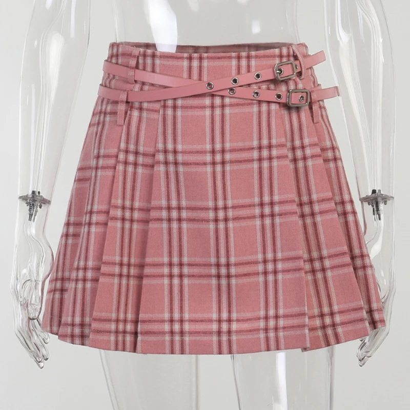 Юбка в готическом стиле InsGoth Y2K, красная клетчатая трапециевидная мини-юбка в стиле Харадзюку, с высокой талией, в стиле эмо, уличная одежда для девушек