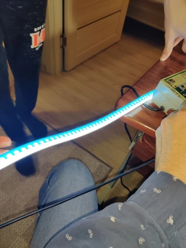 диоды наклеены криво, отметок для отрезки лишних диодов нет, отрезал на глаз два не стали работать, а так все чётко моргает светится как в описании