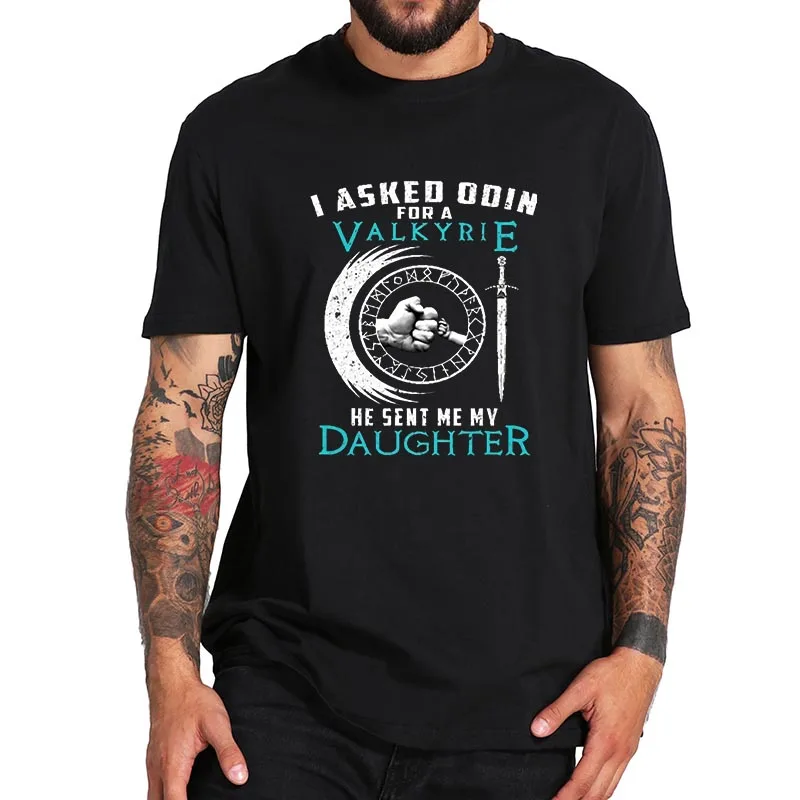Я попросил Одина про валькири, он отправил мне футболку моей дочери, викинги для мужчин, футболка, высококачественная одежда