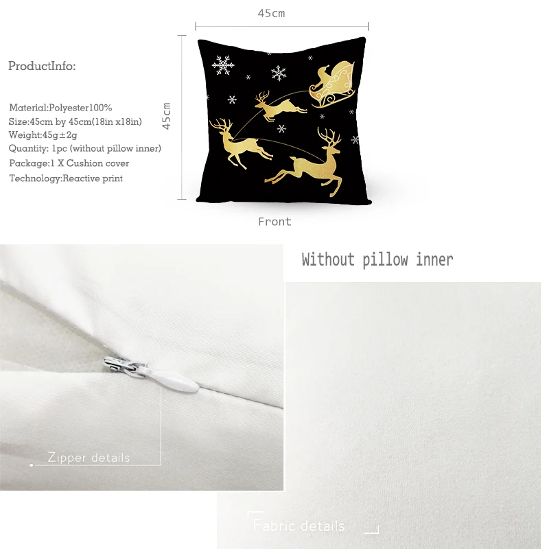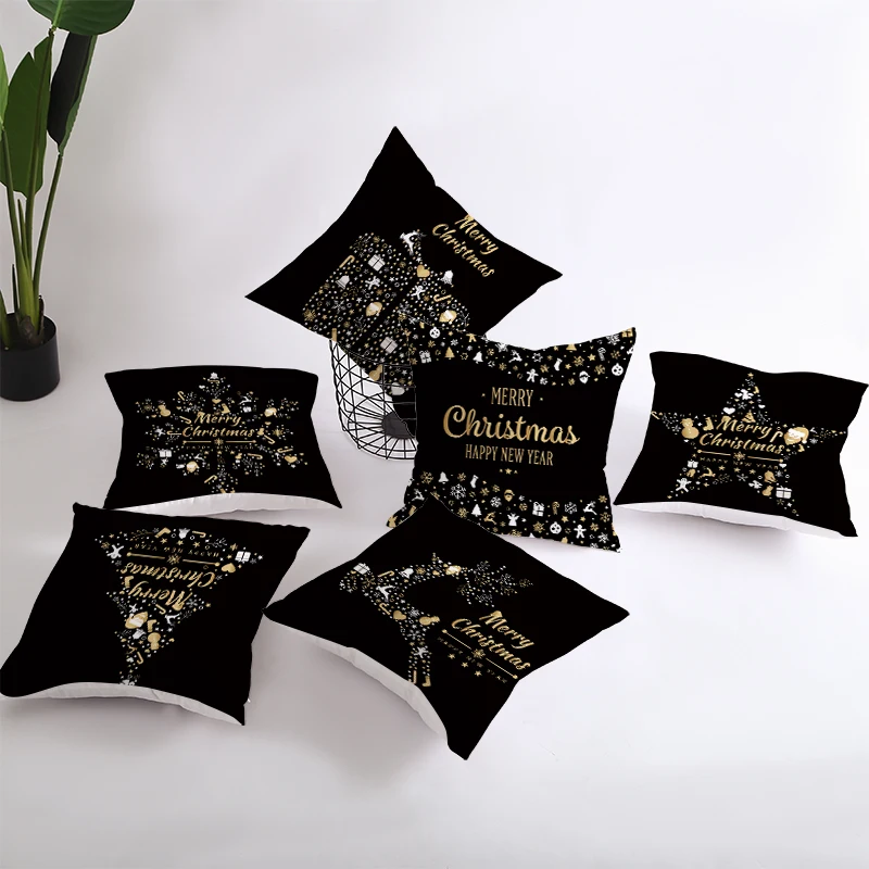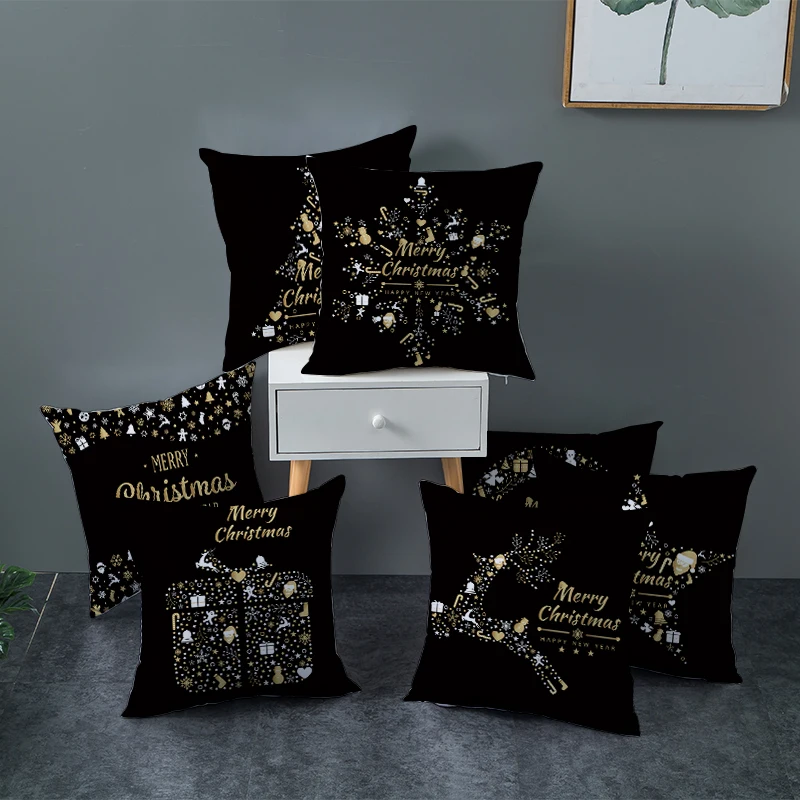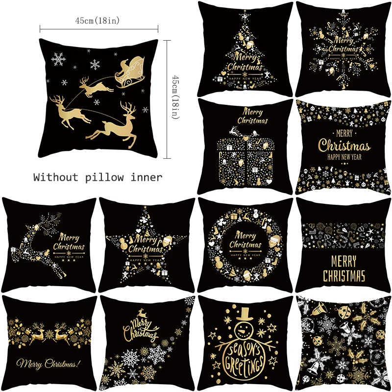 Рождественское украшение для дома, золото черный Чехол на подушку, ...