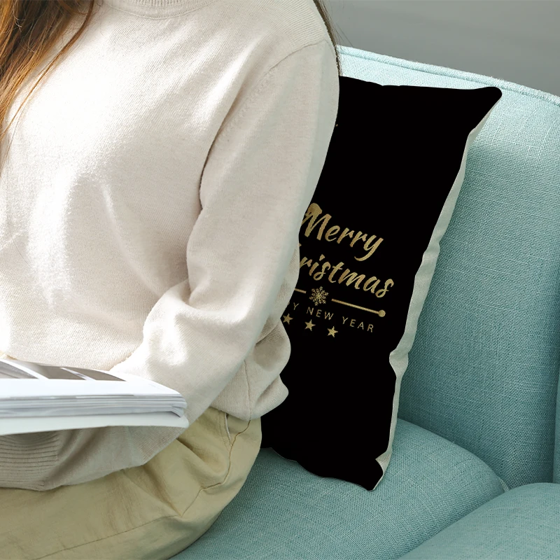 Черная Рождественская наволочка для подушки, рождественские украшения для дома, рождественские украшения для дивана, подарок на Рождество, Новый год 2022