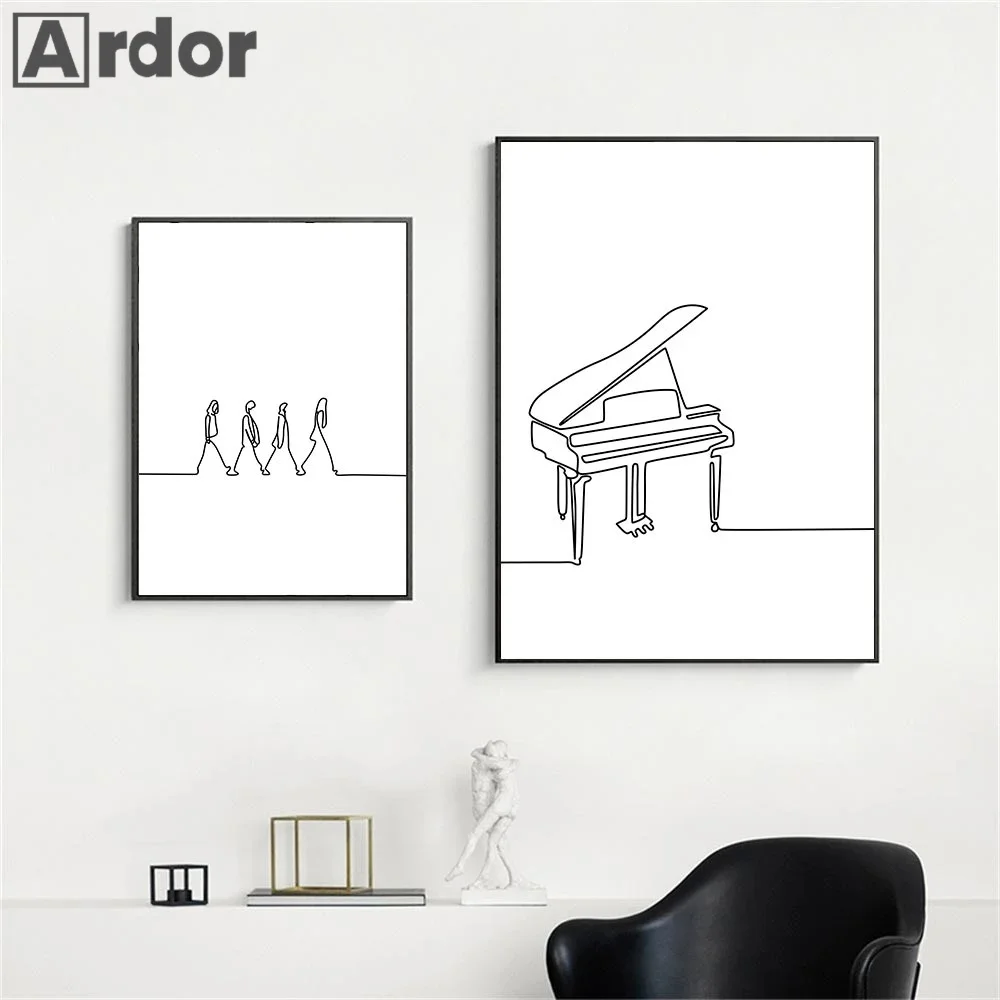 Скандинавская линия пианино, настенный художественный плакат, музыкальные ноты, Художественная печать пианино, Картина на холсте, черные и белые картины, декор для гостиной