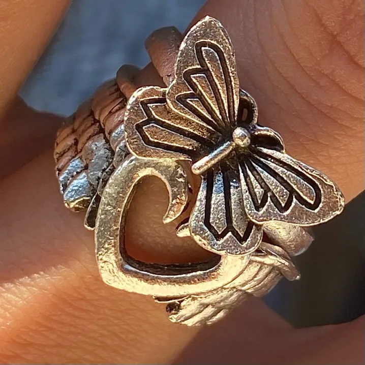 Винтажные посеребренные кольца кольцо с крыльями ангела для женщин,...