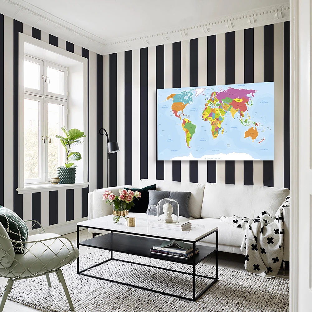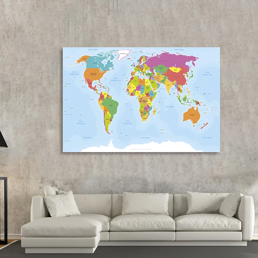 150*100 см карта мира политическая во Франции Школьные принадлежности Холст Карта мира домашние Декоративные плакаты и принты