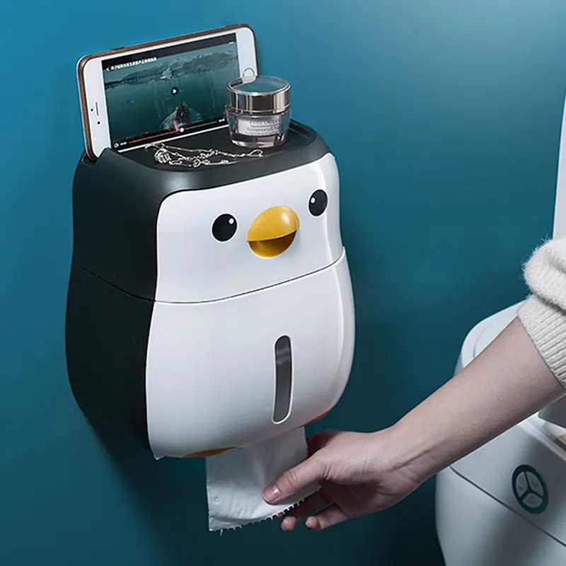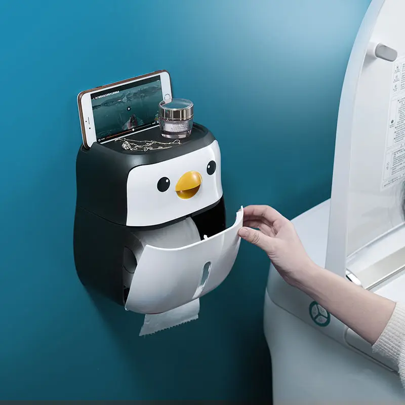 Многофункциональная мультяшная коробка для салфеток, стойка для туалетной бумаги с бесплатной перфорацией, вместительная коробка для хранения, аксессуары для ванной комнаты