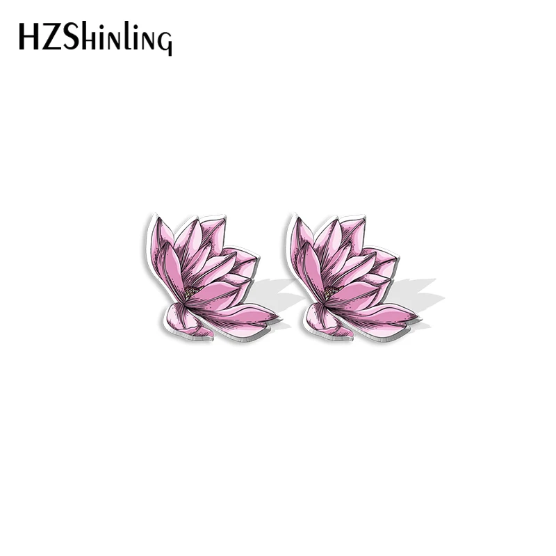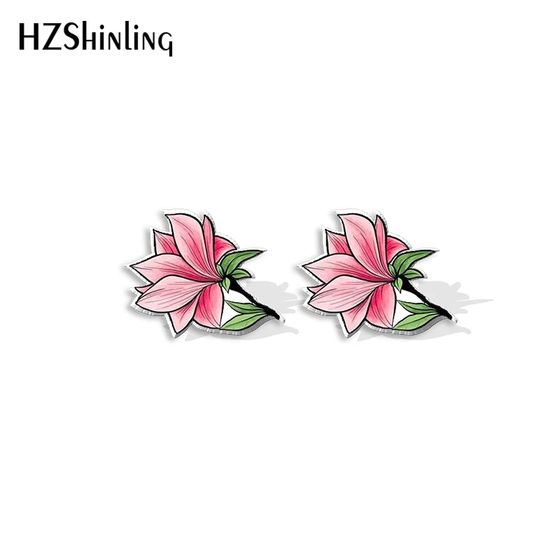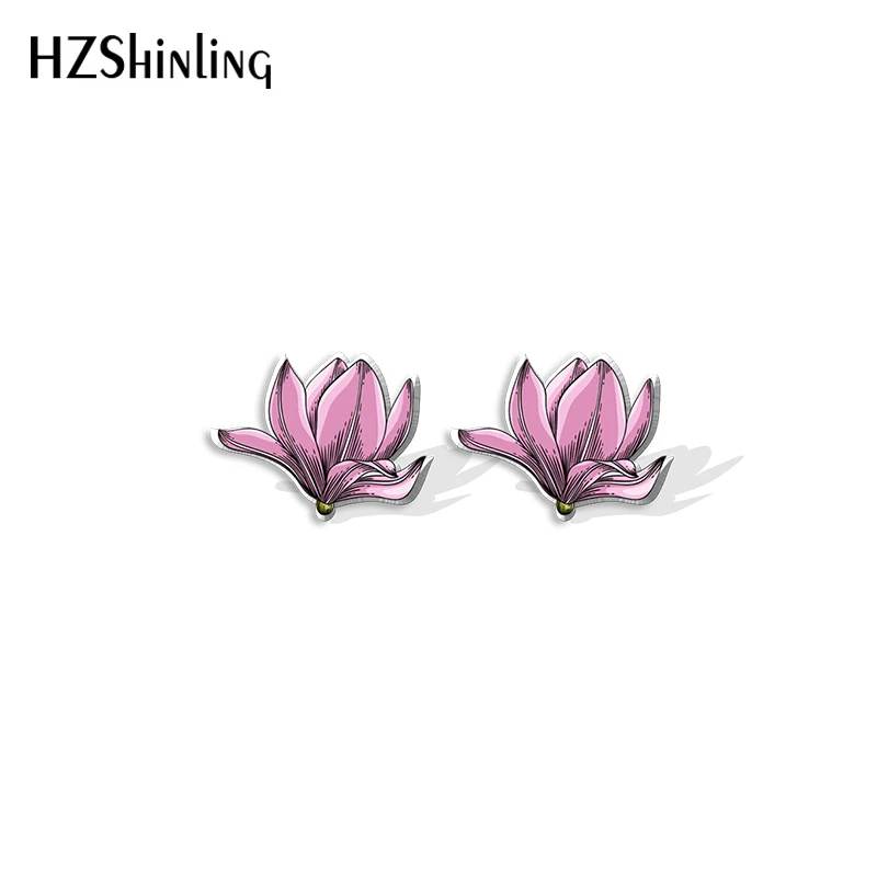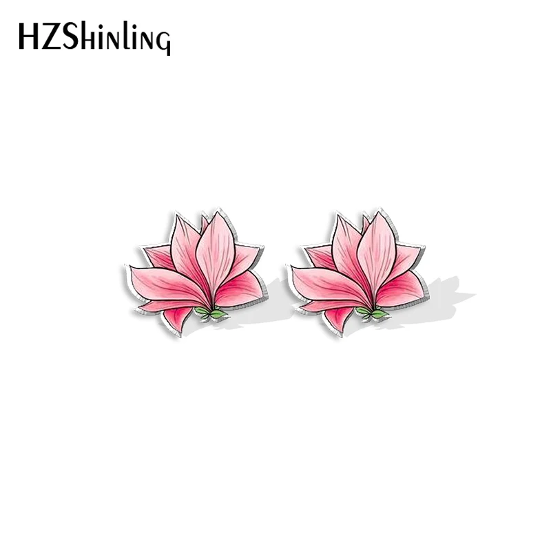 2021 новые розовые серьги-гвоздики в виде цветов магнолии, искусство, искусство, эпоксидная Бриллиантовая девушка