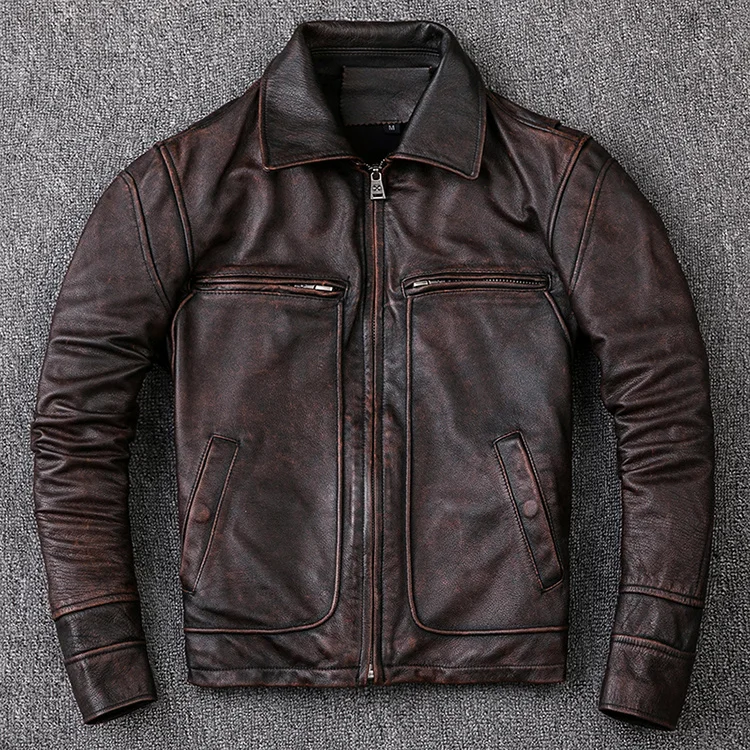 Новинка! Мужская кожаная байкерская куртка в винтажном стиле