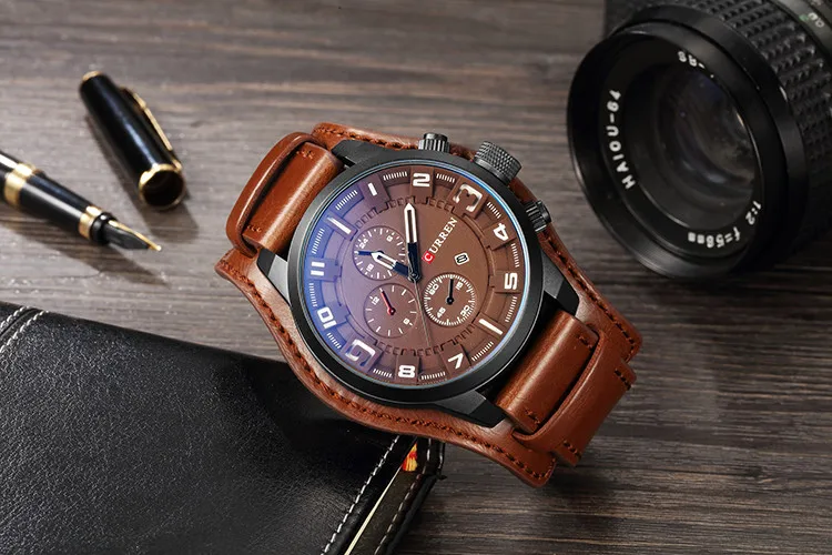 CURREN Лидирующий бренд, спортивные мужские часы, Прямая поставка, мужские часы, спортивные военные часы, кожаный ремешок, кварцевые мужские часы, подарок 8225