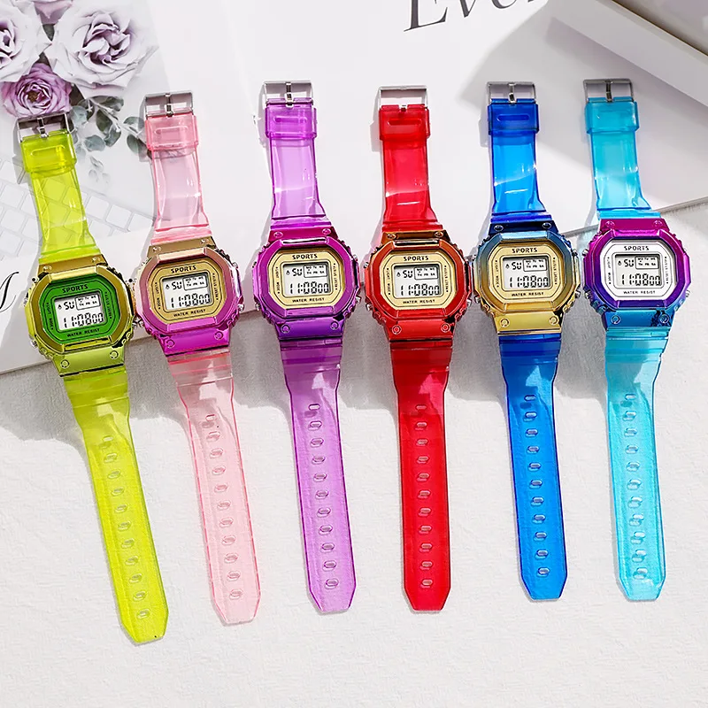 Цветные гальванические маленькие квадратные электронные часы, многофункциональные водонепроницаемые светодиодные электронные часы для студентов и детей