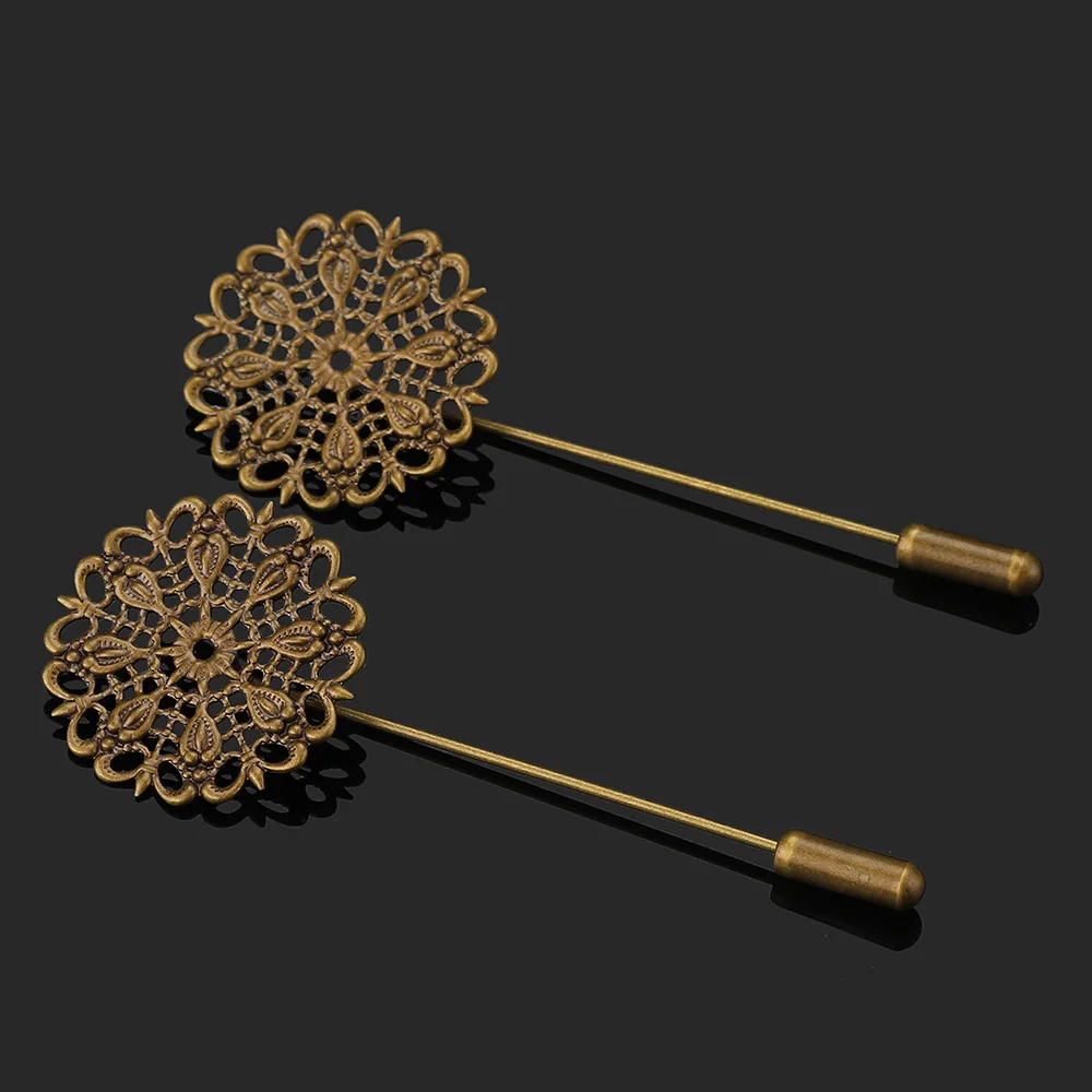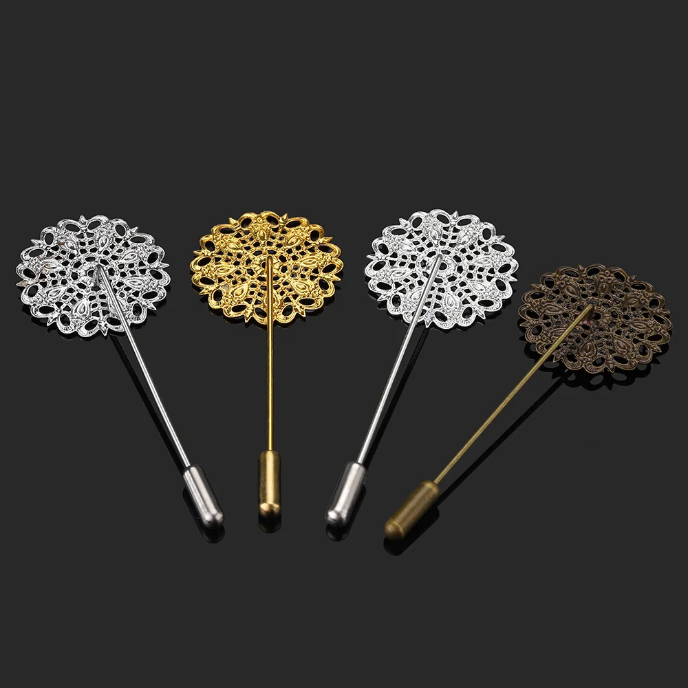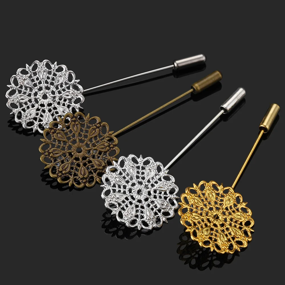 Брошь филигранная в форме цветка, бутоньерка с вырезами, основа для брошки на лацканы для свадьбы, сделай сам, 5 шт., 25 мм