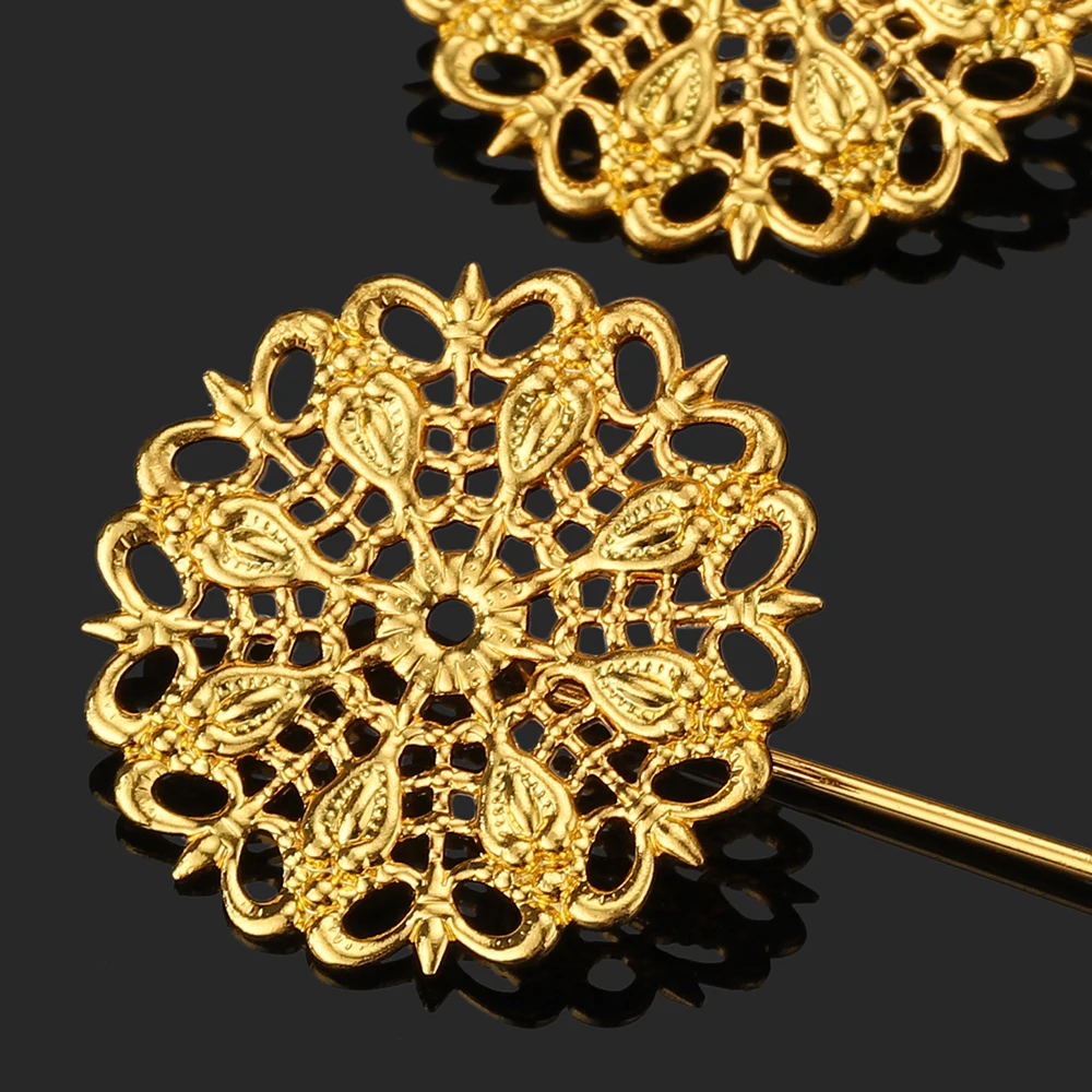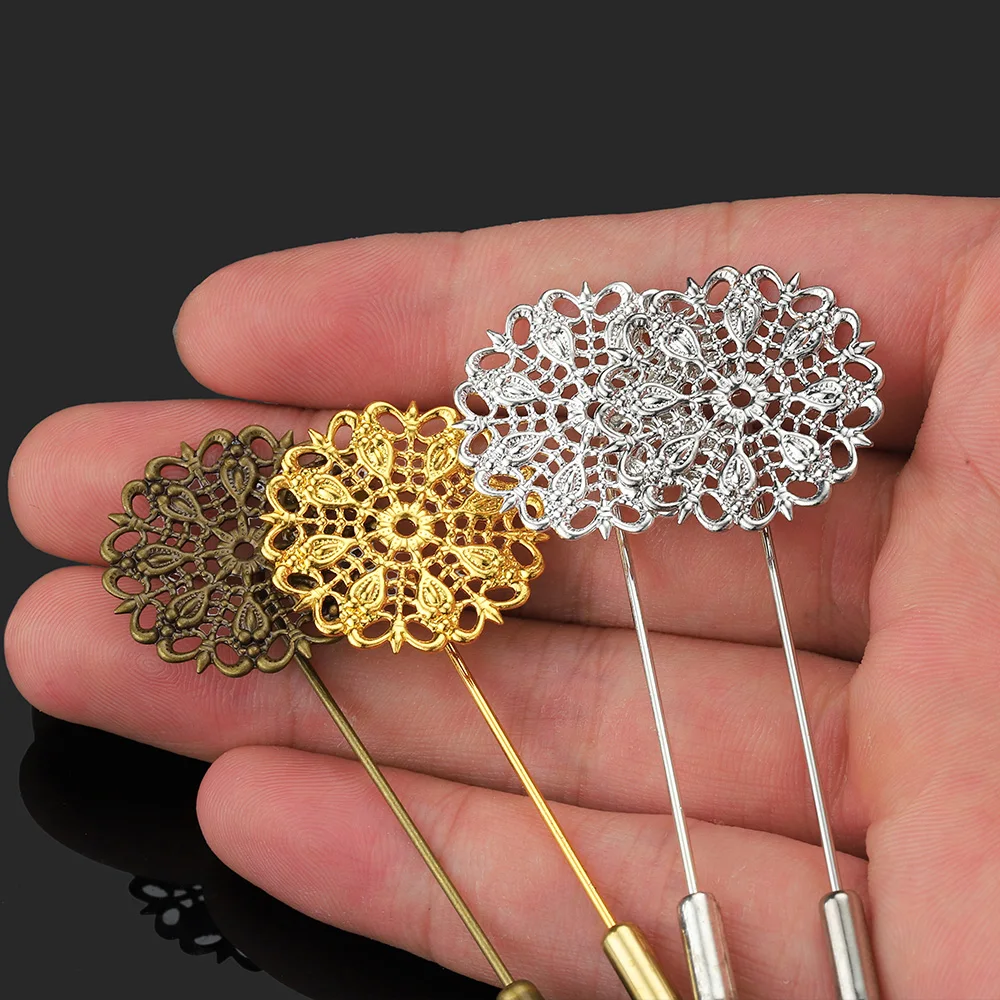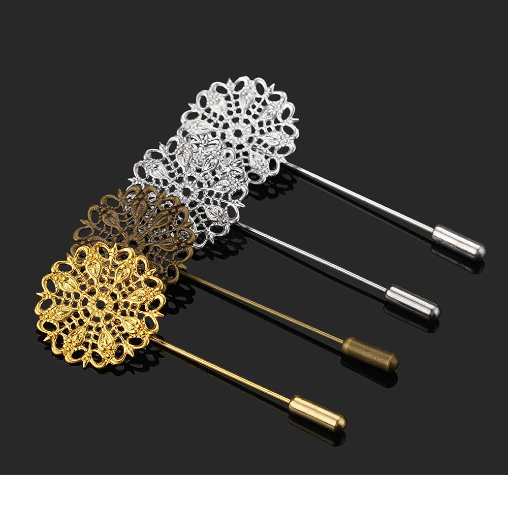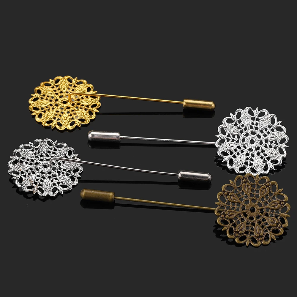 Брошь филигранная в форме цветка, бутоньерка с вырезами, основа для брошки на лацканы для свадьбы, сделай сам, 5 шт., 25 мм
