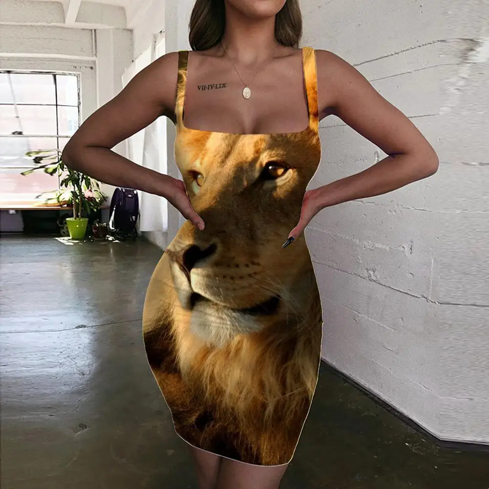 KYKU Лев платья женщин животное облегающее платье аниме с лямкой на...