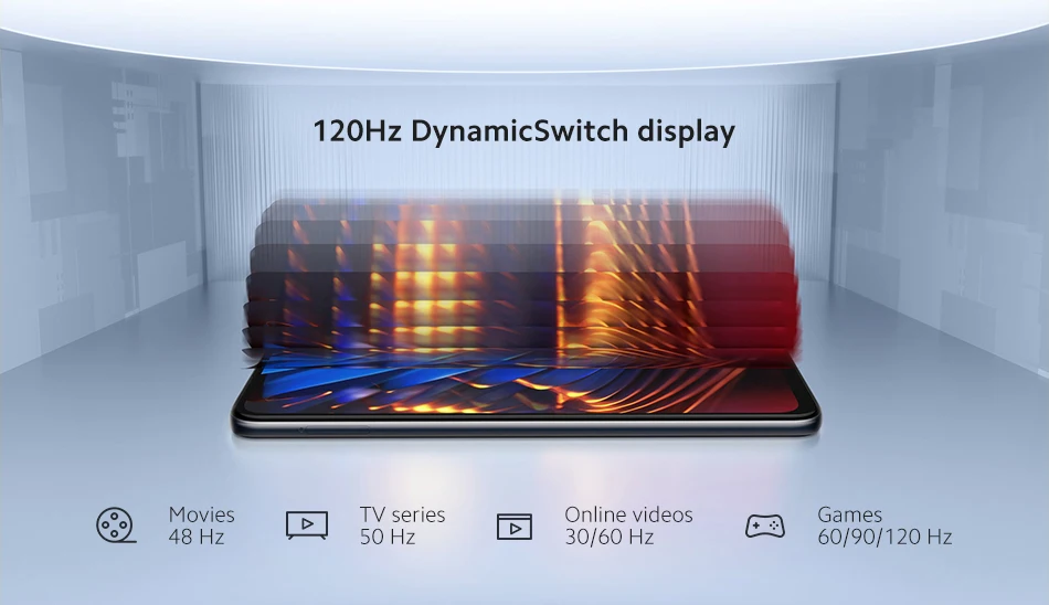 Высокая частота обновления обеспечивает более плавное ощущение при прокручивании и воспроизведении игр. Чтобы избежать несоответствия частоты обновления и частоты кадров, что приводит к задержке изображения, POCO X3 GT оснащен динамическим переключателем, который точно соответствует частоте обновления к частоте кадров фильмов, видео и другое содержимое от 30 Гц до 120 Гц. Разница между этим дисплеем и низкочастотным дисплеем будет особенно ясна при просмотре фильмов и воспроизведении игр