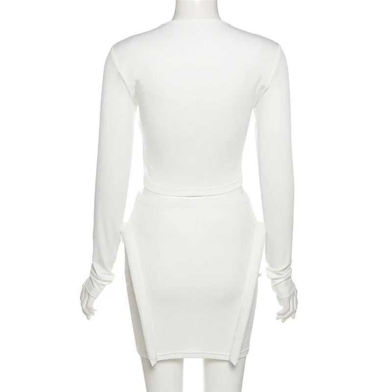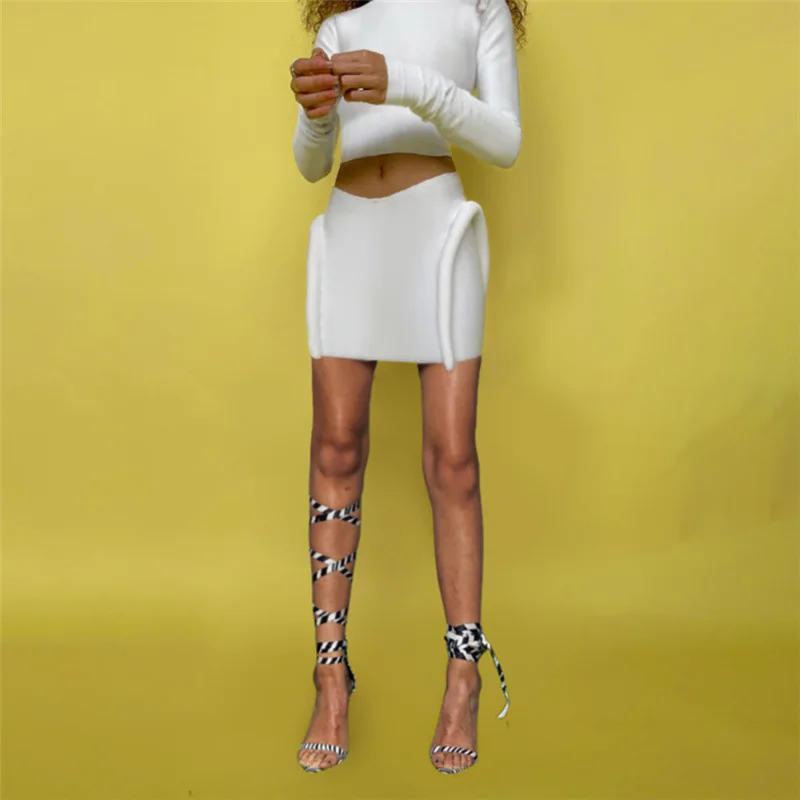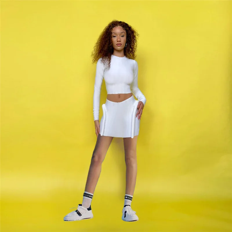 Новинка, Женский комплект из двух предметов с юбкой, однотонный комплект в рубчик, Соблазнительный топ-труба с длинным рукавом, облегающий клубный наряд комплект с юбкой в обтяжку