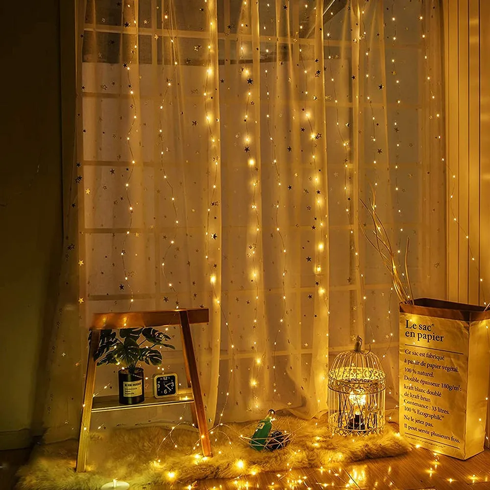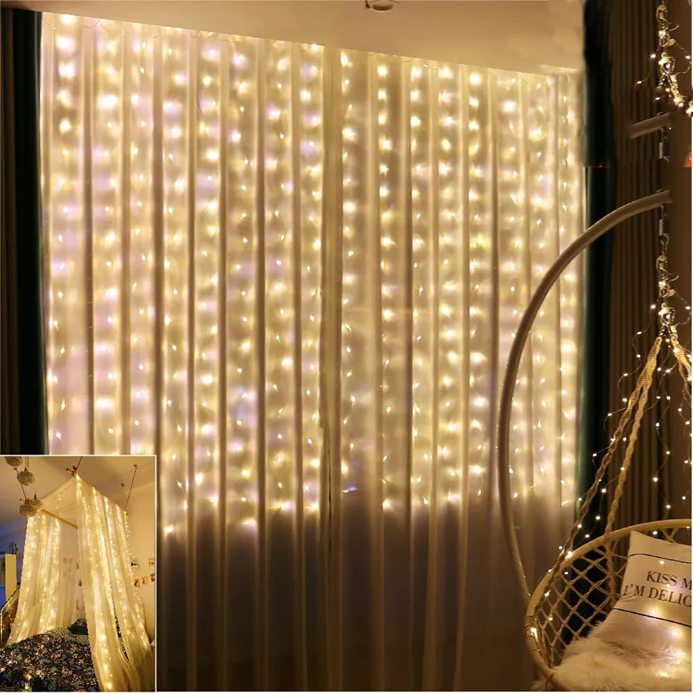 Рождественские украшения 2022, свадебные аксессуары, светодиодная гирлянда на солнечной батарее, гирлянда, Сказочная Гирлянда-занавеска, 3 м x 3 м для нового года, дня рождения, Декор