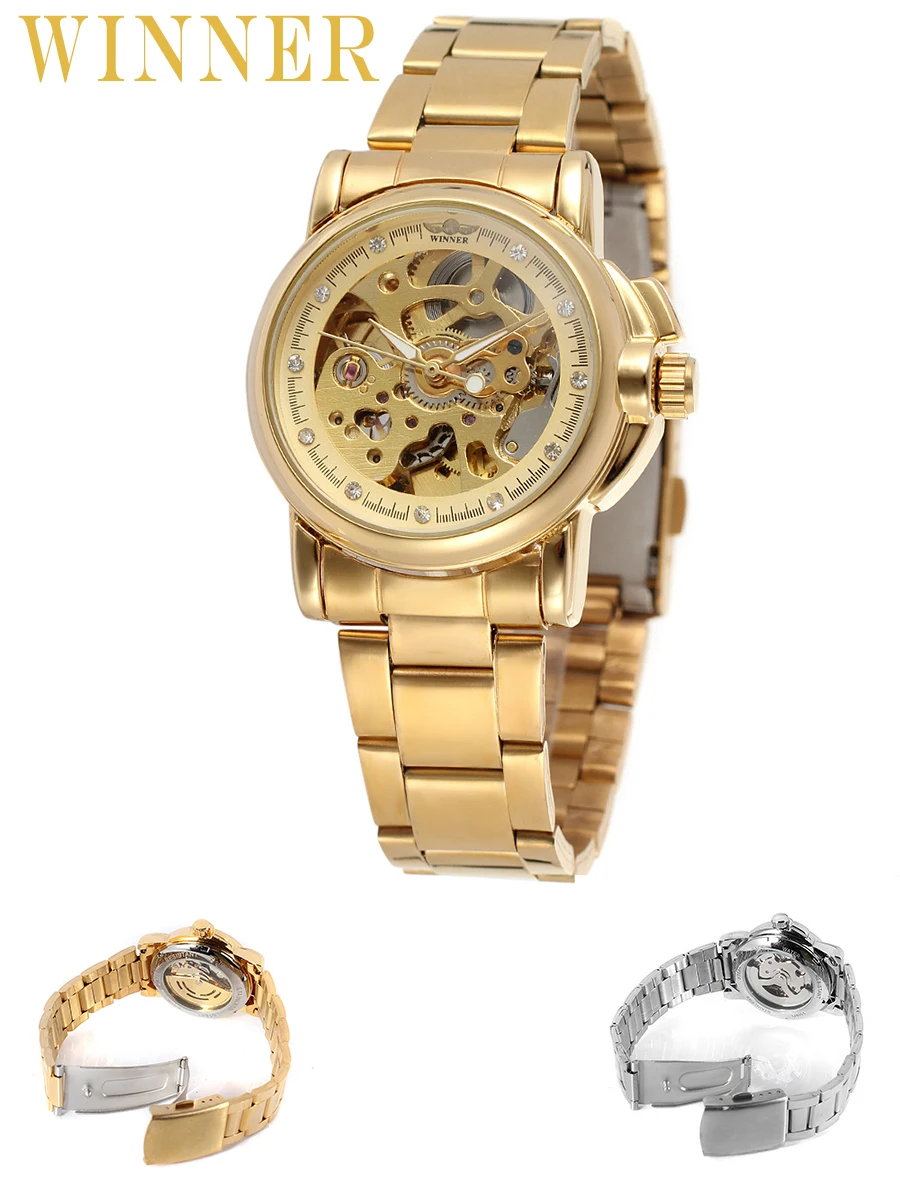 Часы наручные WINNER женские механические, роскошные подарки, стальные водонепроницаемые