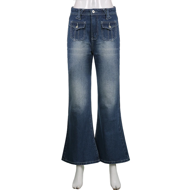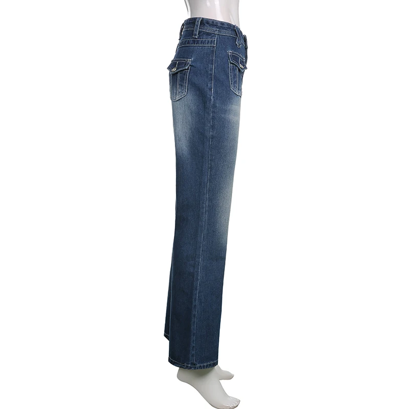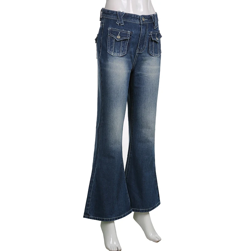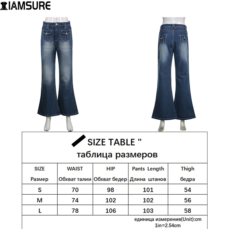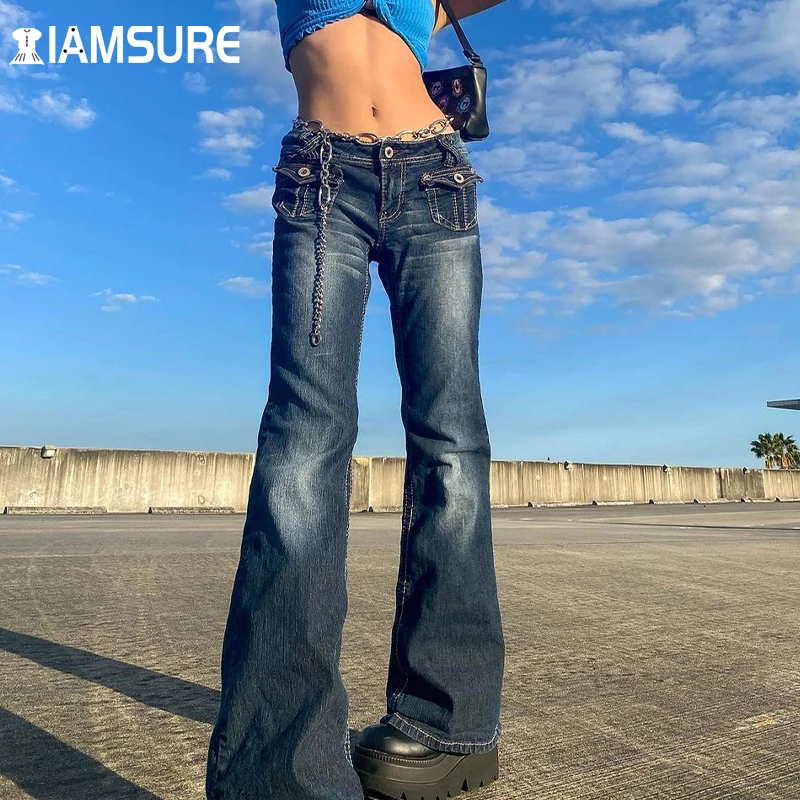 Джинсы-клеш IAMSURE, с карманами, низкой талией, винтажные, уличные, женские брюки, широкие, Осень-зима 2021