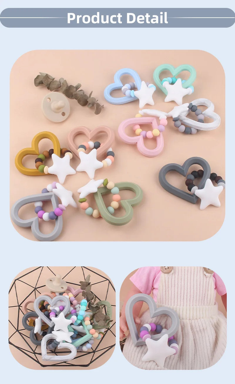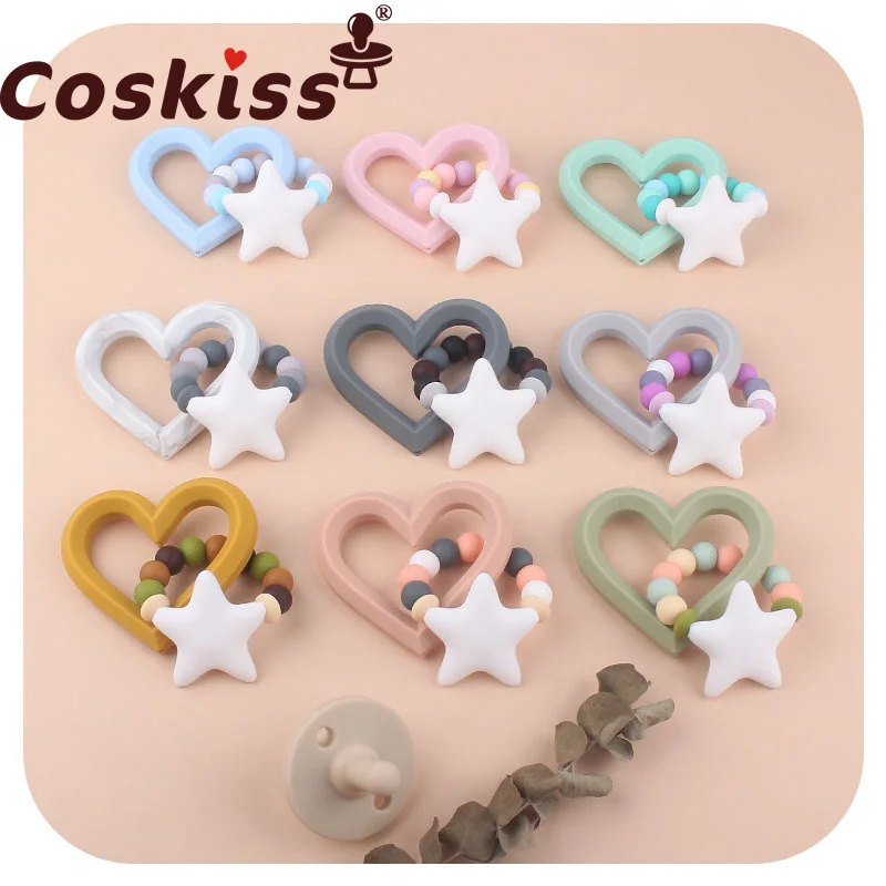 Силиконовая игрушка Coskiss, любовь, сердце, звезды, без бисфенола А, соска-прорезыватель для зубов, детский браслет для кормления, для моляров, браслет для прорезывающихся зубов, подарок для ванны