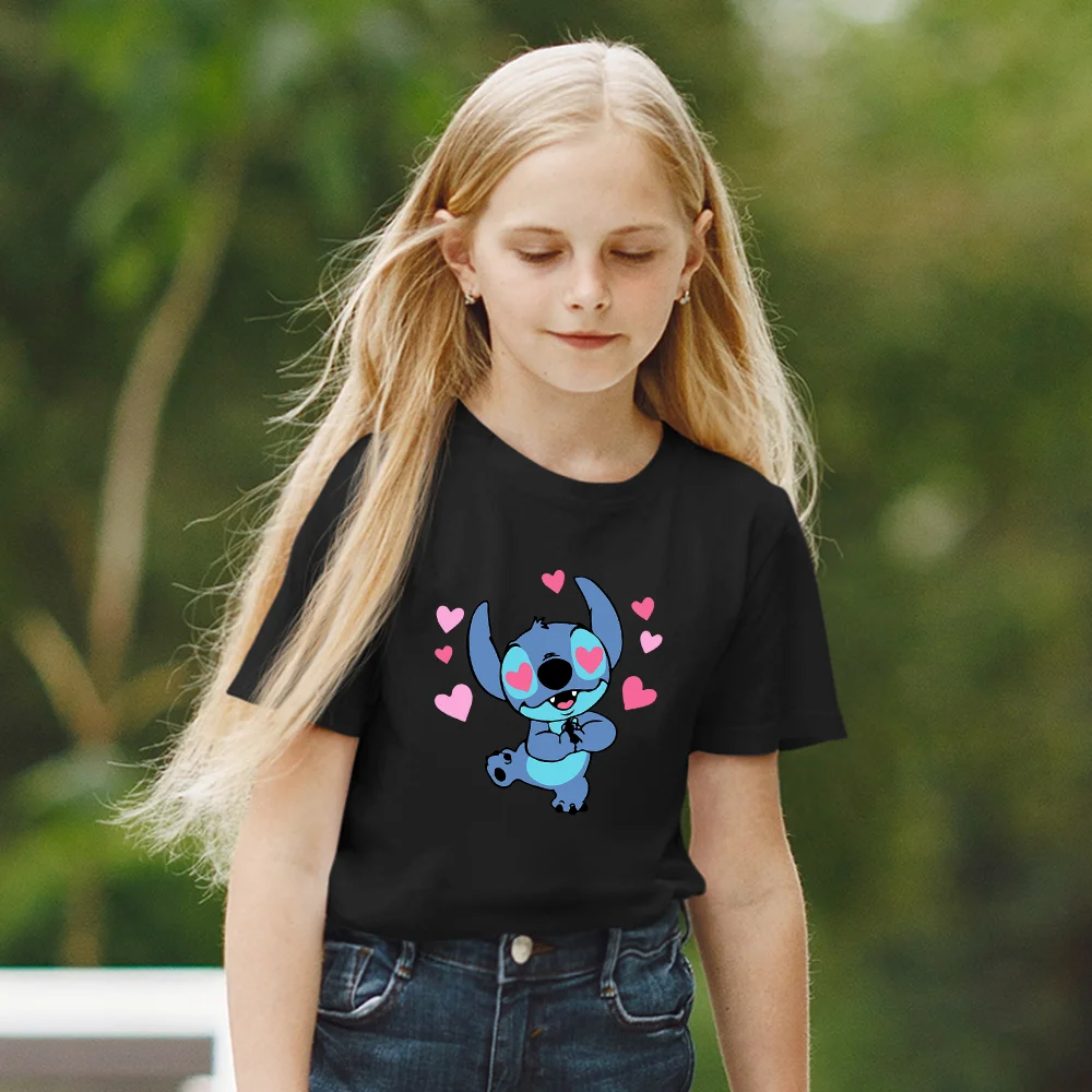 Футболки для девочек с рисунком из мультфильма Лило и Ститч, детски...