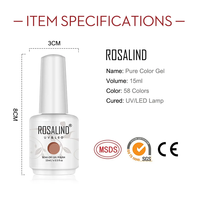 Гель-лак для ногтей ROSALIND, 15 мл, полуперманентные гибридные лаки для маникюра, чистые цвета, требуют лампы УФ светодиодный