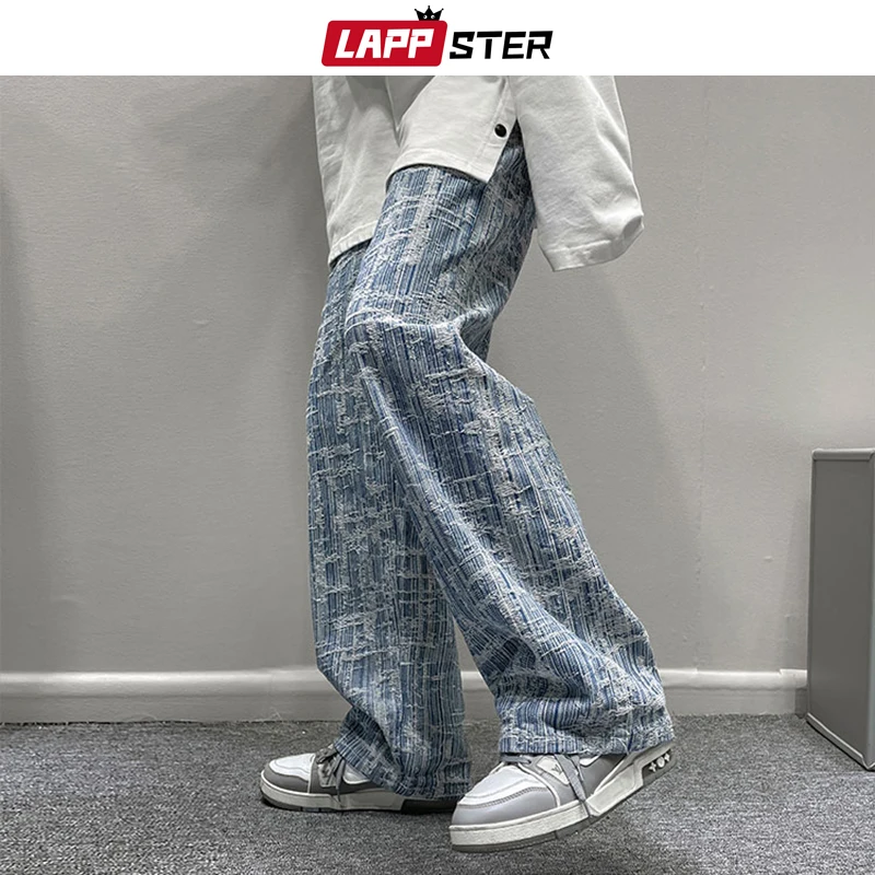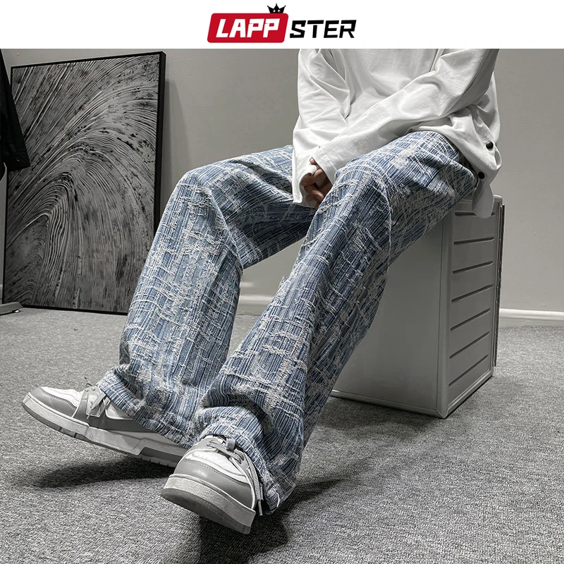 Мужские Мешковатые джинсовые брюки LAPPSTER Y2k с широкими штанинами 2021, мужские повседневные классические джинсовые брюки в стиле K-POP