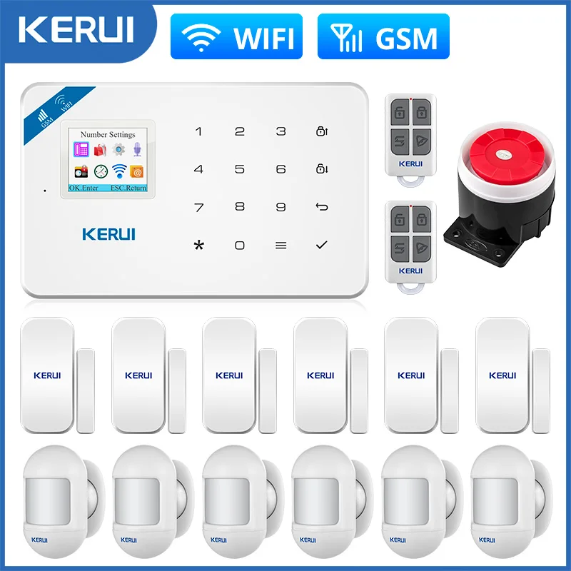 KERUI умная домашняя система охранной сигнализации комплект W18 WIFI GSM беспроводной охранный PIR детектор движения контроль пожарный датчик дыма ip-камера