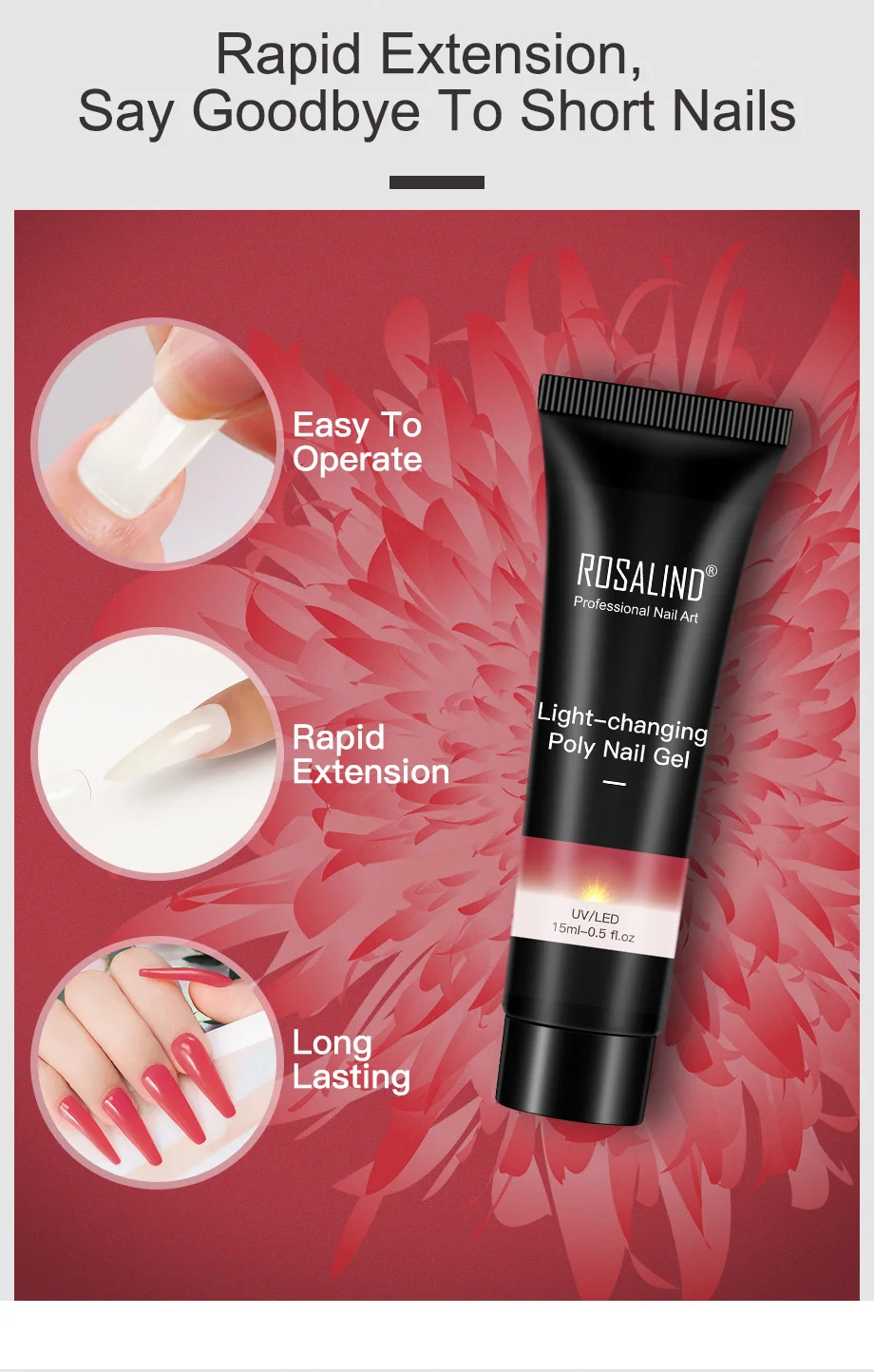 ROSALIND 15 мл полиуф-гель для наращивания ногтей 102 цвета дизайн ногтей маникюр полупостоянные Лаки лак для ногтей строительный гель