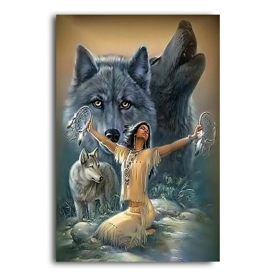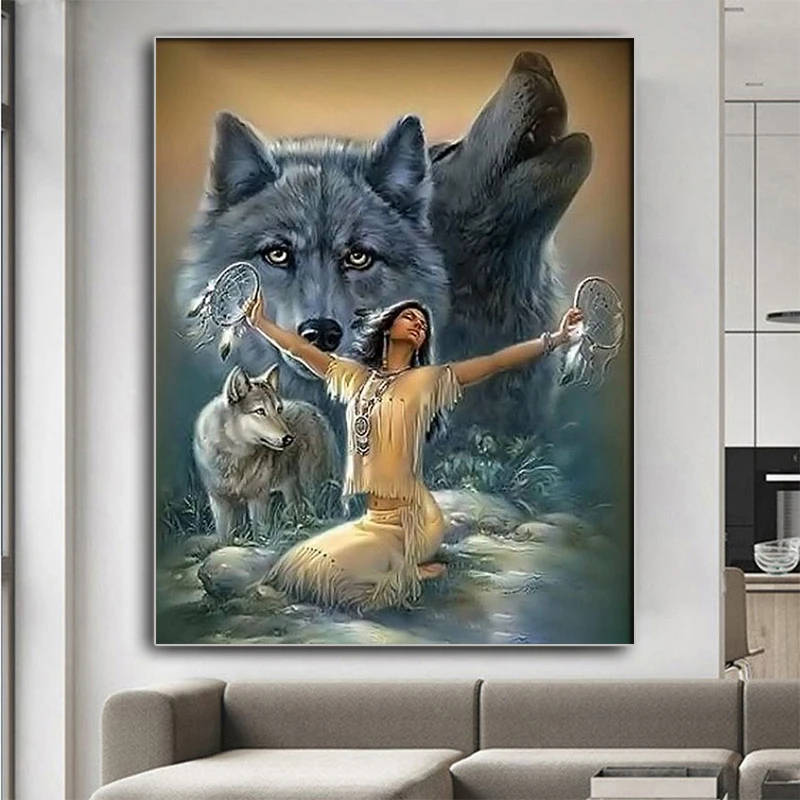 Алмазная 5d картина сделай сам, ВОЛП, индийская мозаика, картины Стразы индийские женщины и волк, украшение для дома