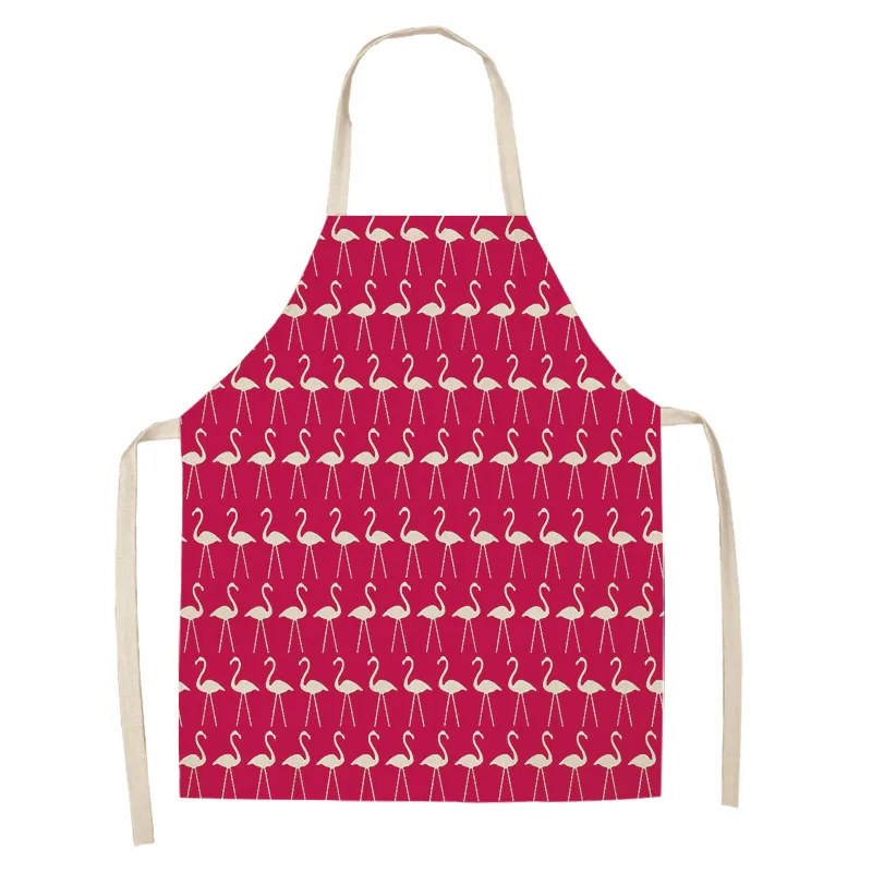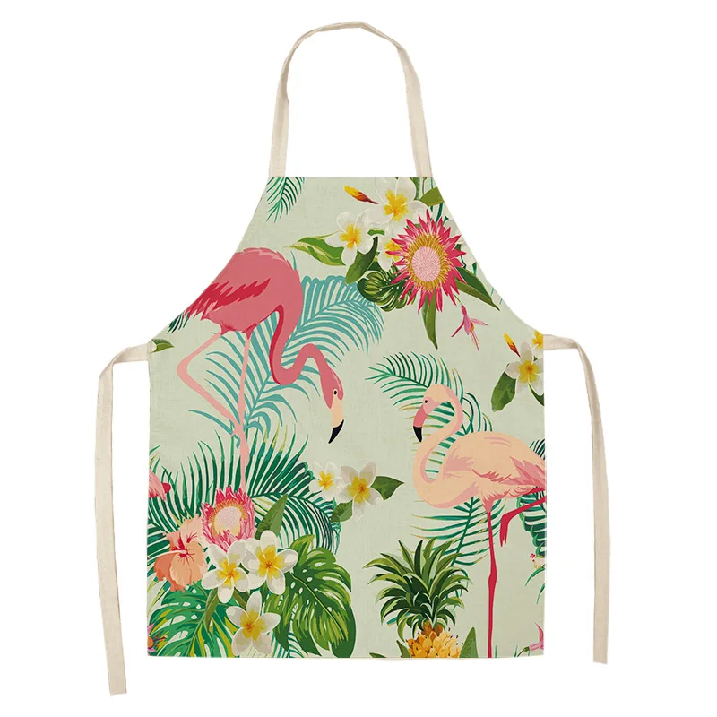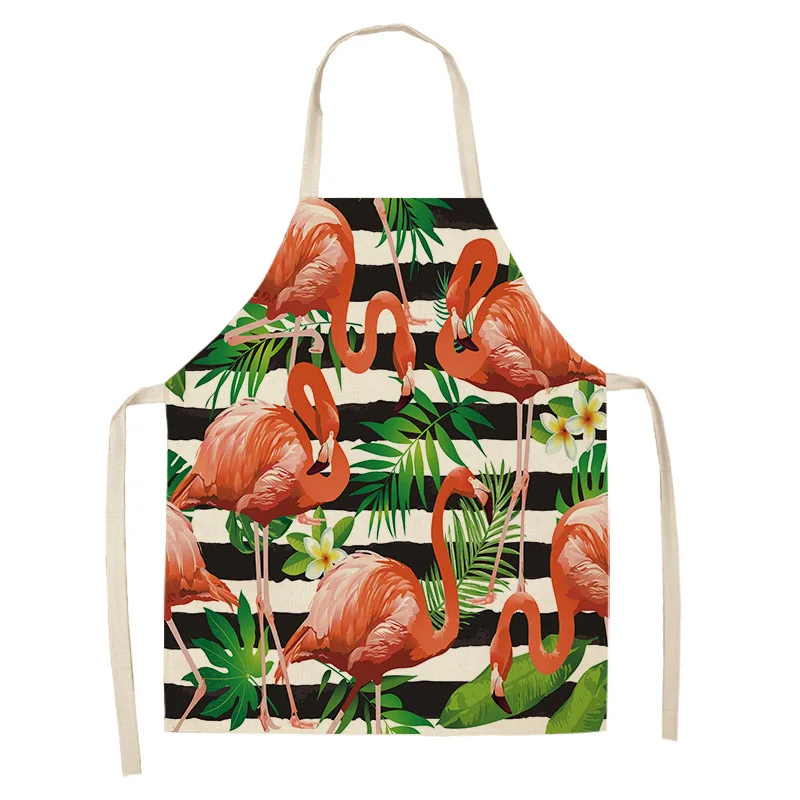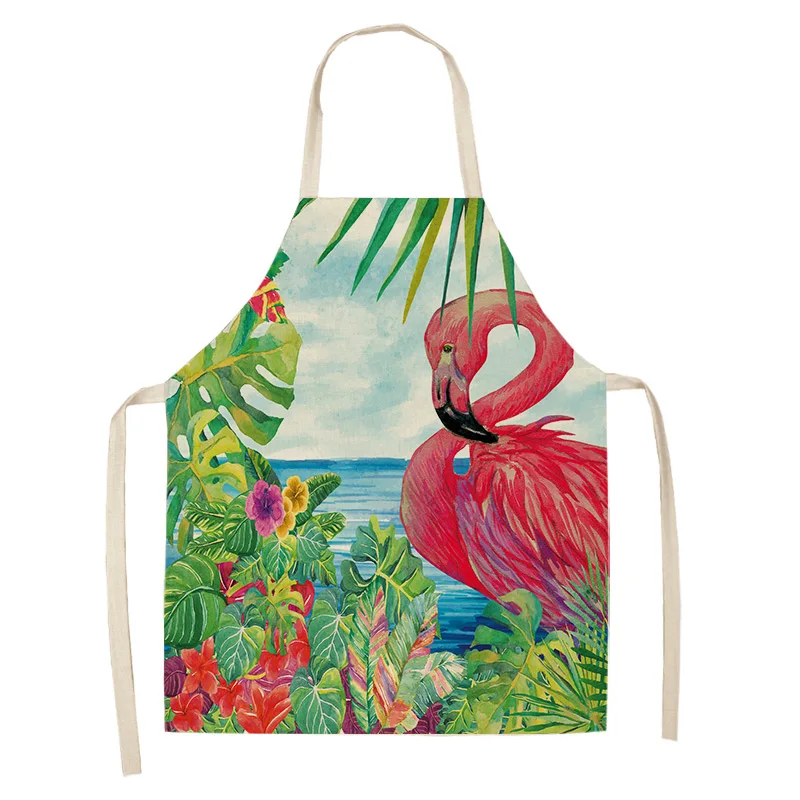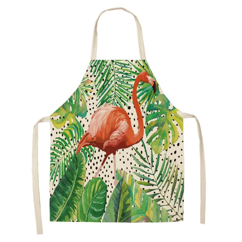 Фартук из хлопка и льна с рисунком листьев фламинго, домашний фартук для готовки, выпечки, кофейни, чистый фартук, кухонные аксессуары для женщин, мужчин и детей