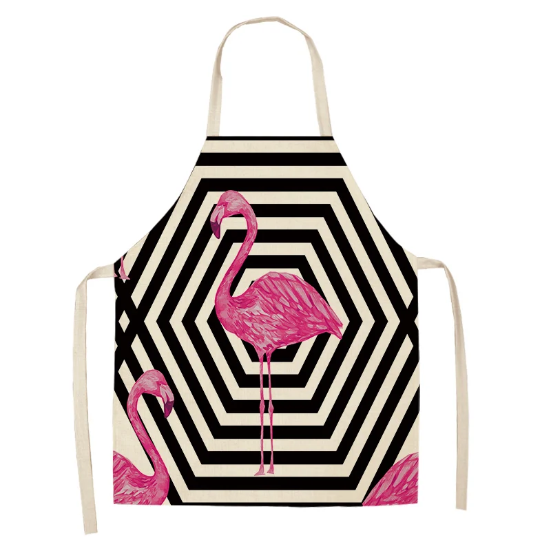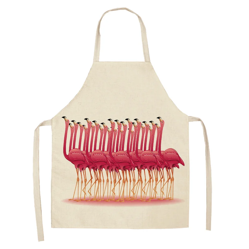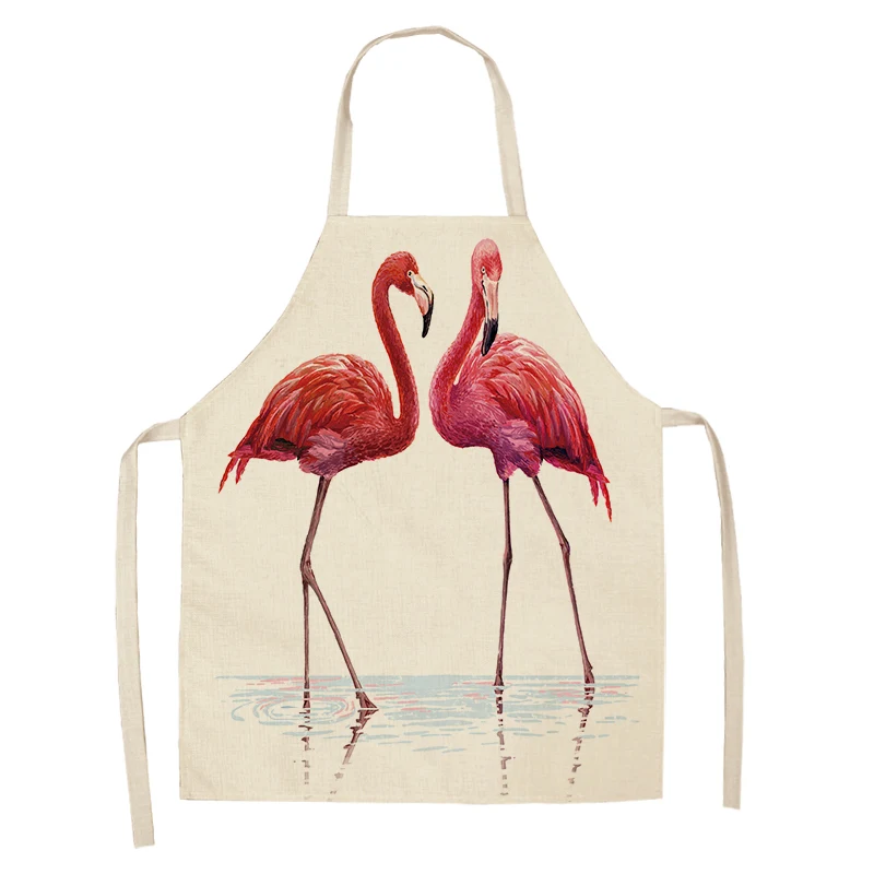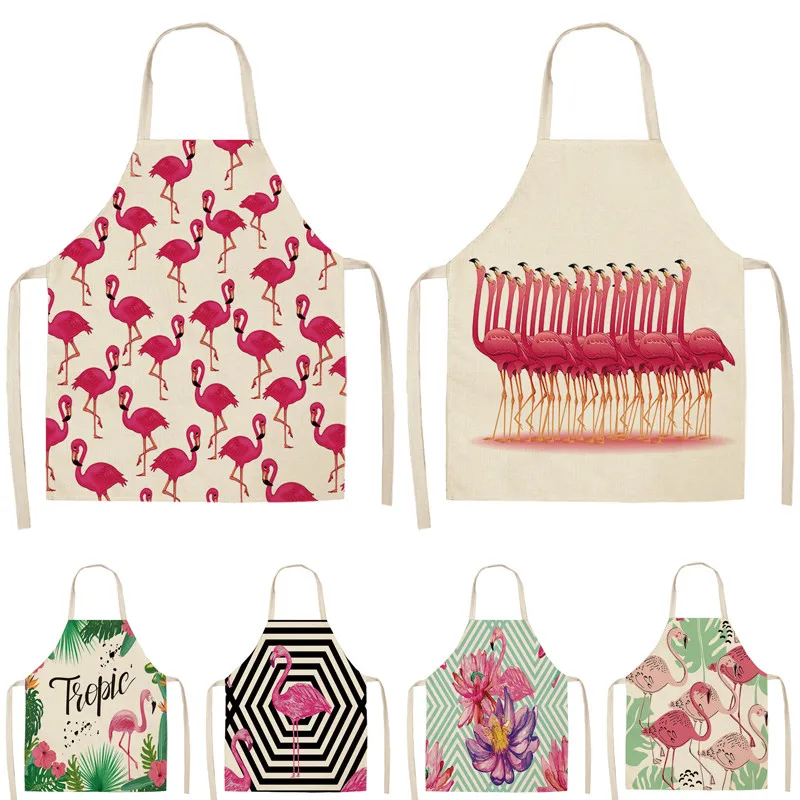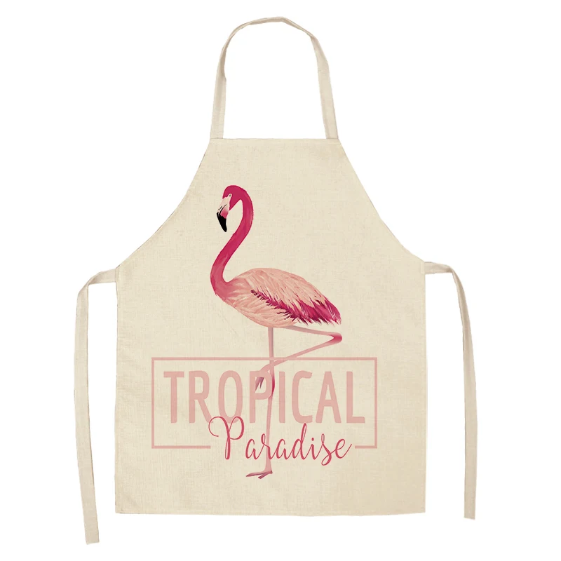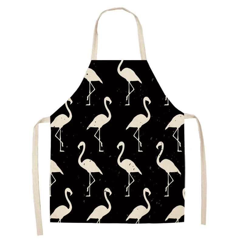 Фартук из хлопка и льна с рисунком листьев фламинго, домашний фартук для готовки, выпечки, кофейни, чистый фартук, кухонные аксессуары для женщин, мужчин и детей