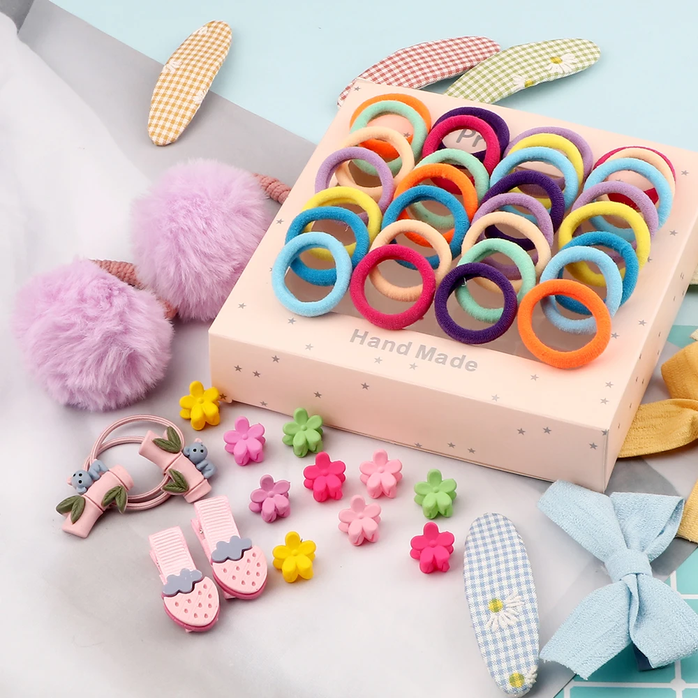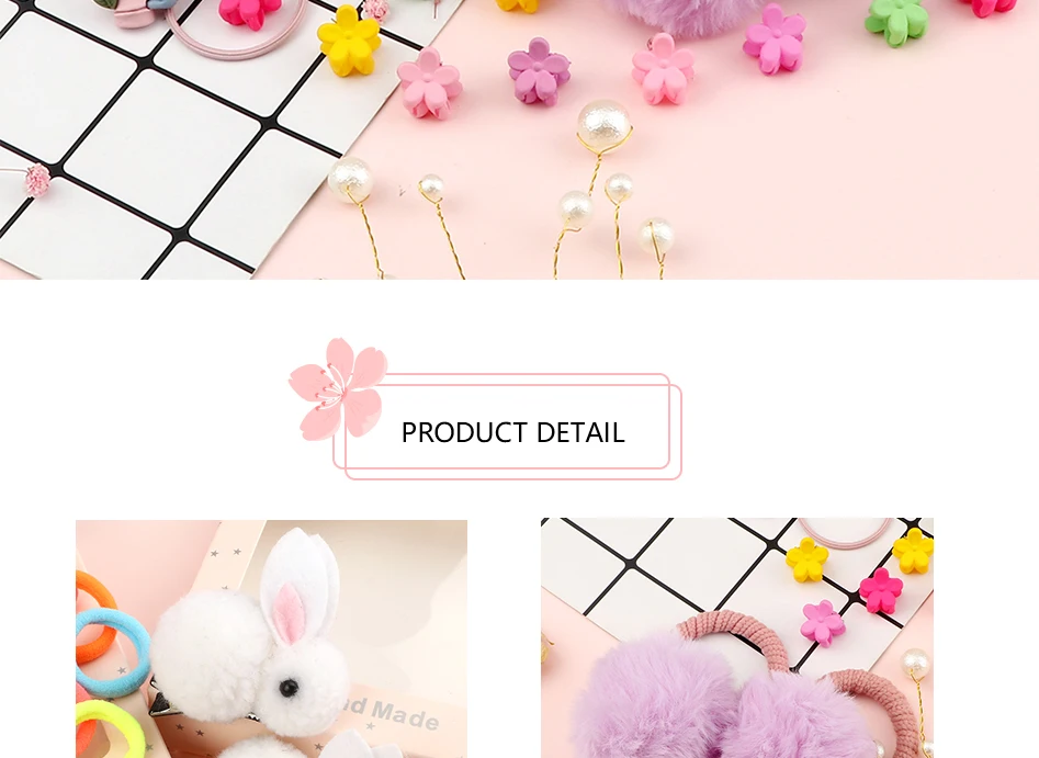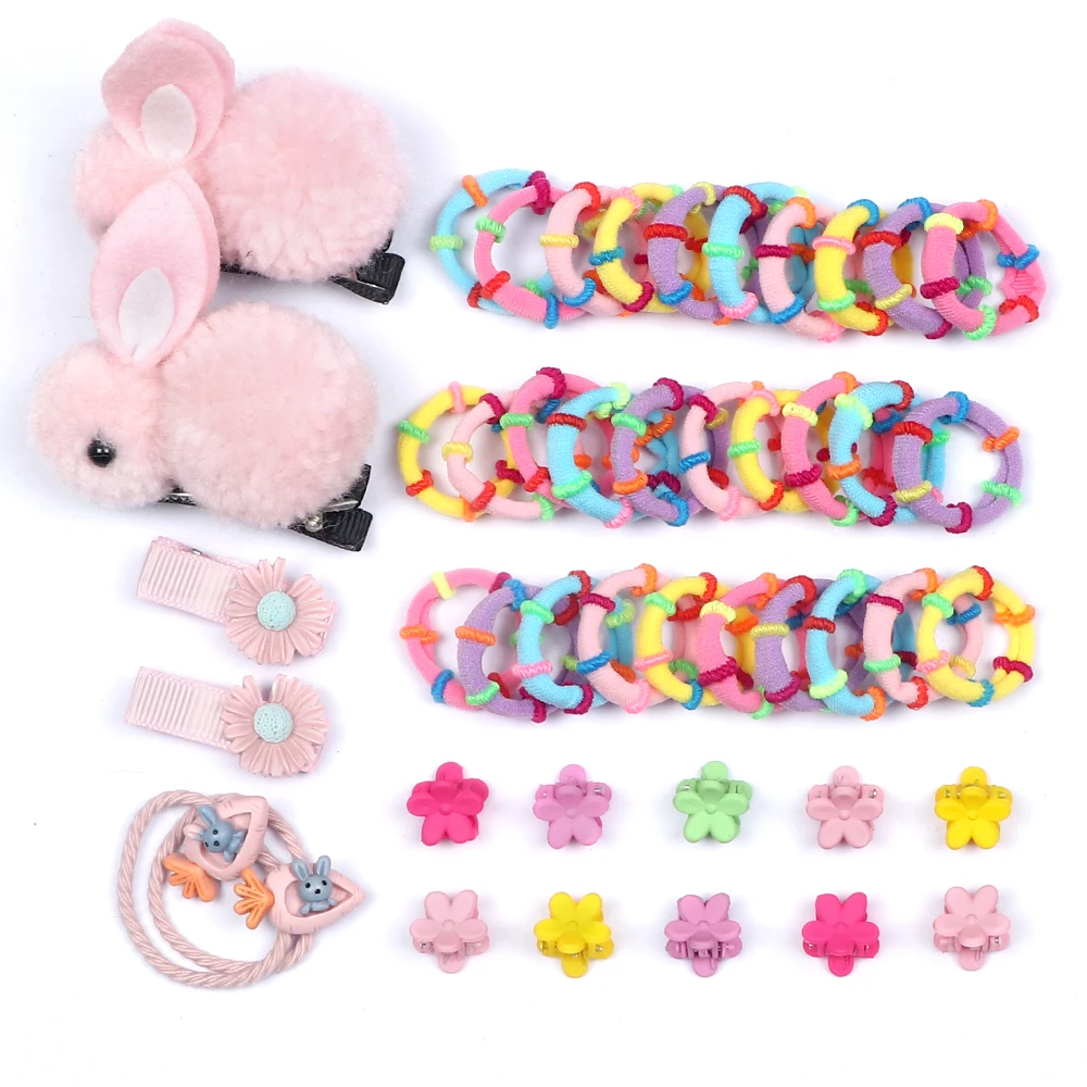 Повязка на голову с милым Кроликом, мягкий эластичный набор аксессуаров для волос с помпонами, мини-цветочный зажим для волос, безопасный головной убор для девочек