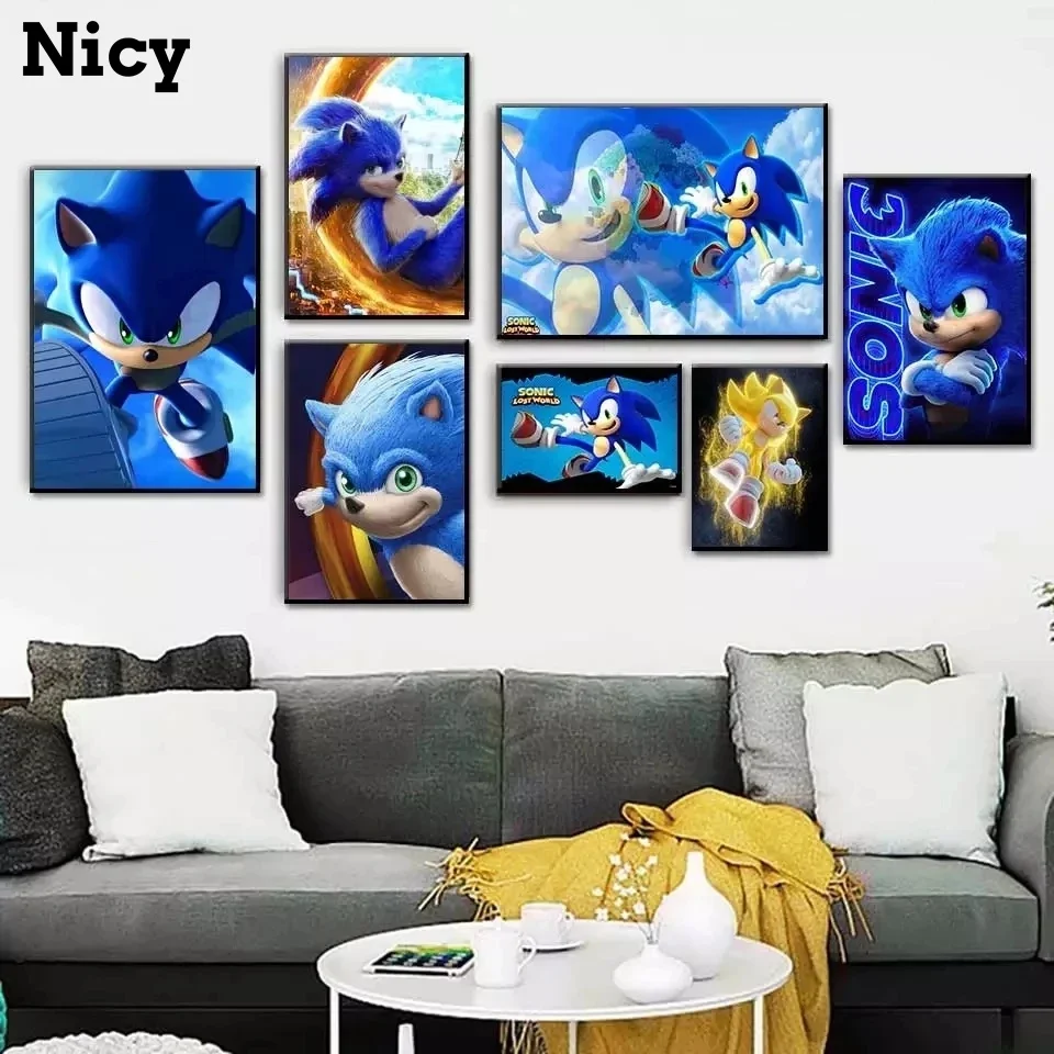 Звуковой плакат совершенно новый синий флэш граффити Фреска мультяшный персонаж художественная живопись плакат печать детская комната художественное украшение