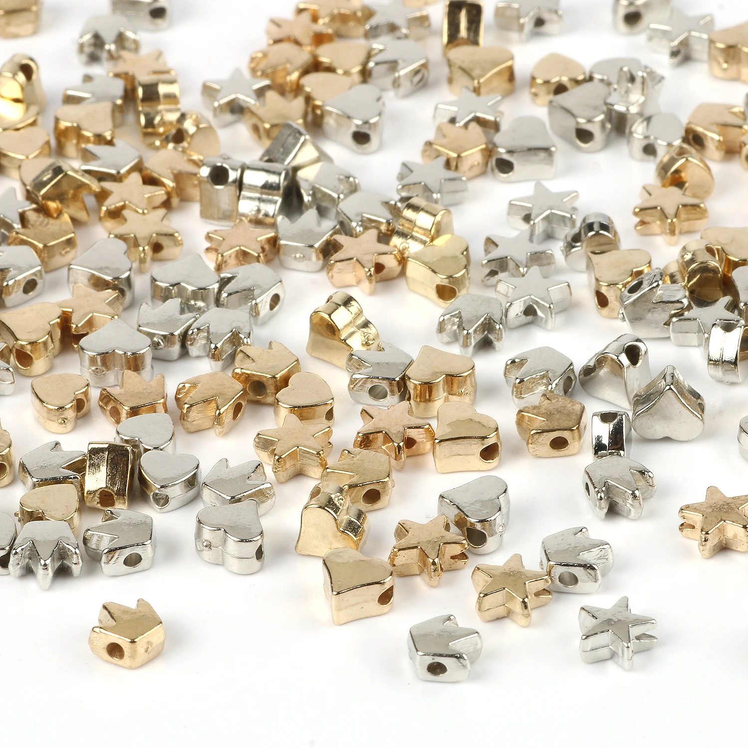 Наименование товара:200-400 шт, акриловые бусины в форме короны в форме сердца для рукоделия, изготовление ювелирных изделий, позолоченные посеребренные бусины, Diy Браслеты