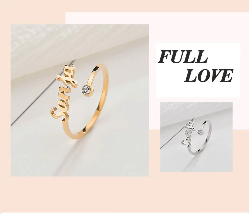 Кольца женские регулируемые из нержавеющей стали, с именем на заказ