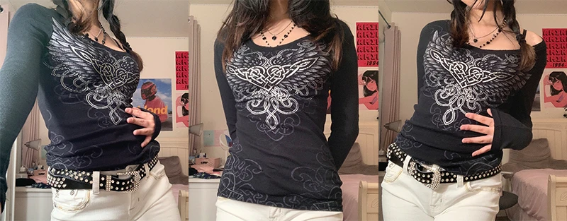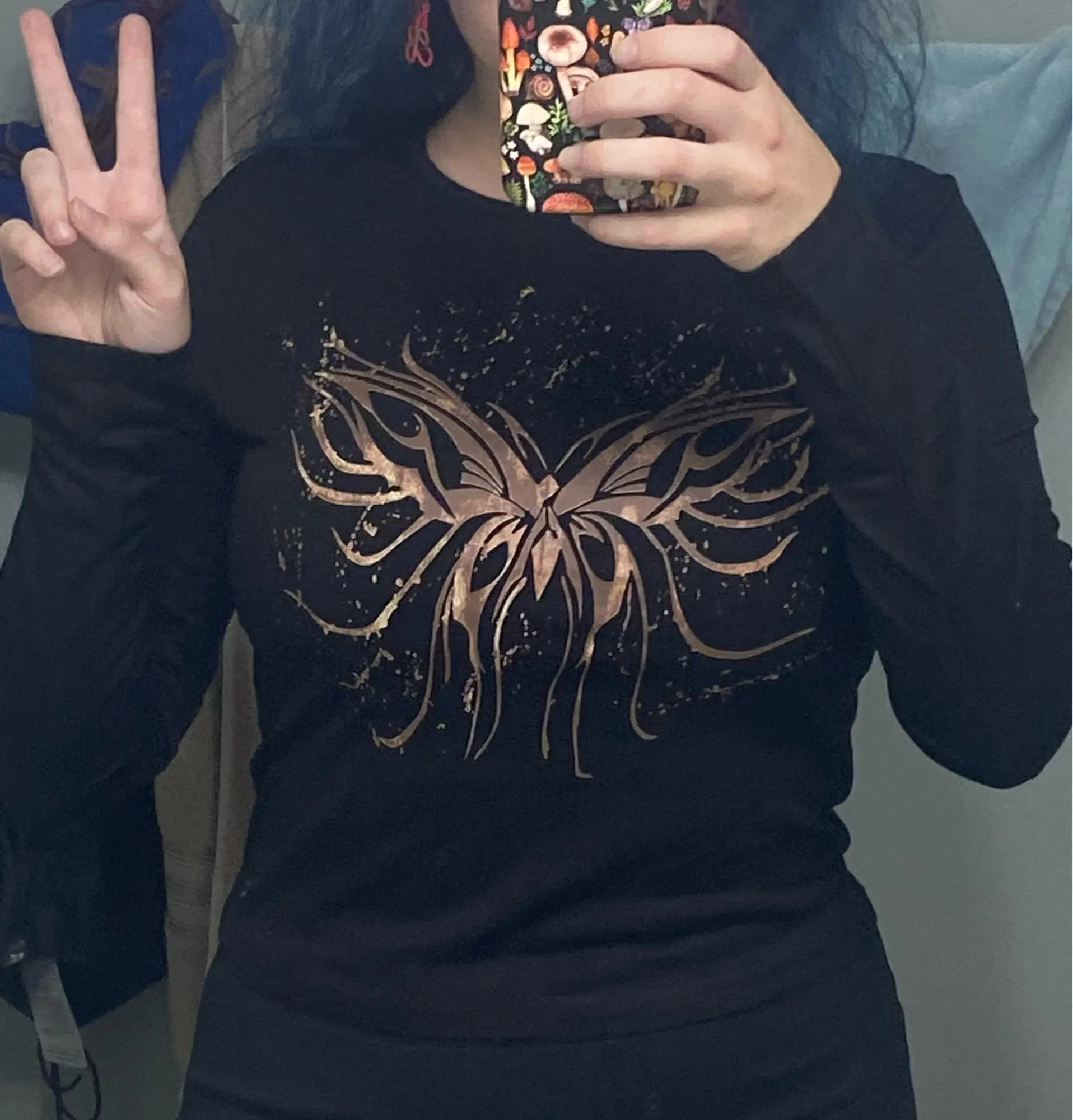 Футболка женская с принтом бабочек и круглым вырезом, осенняя