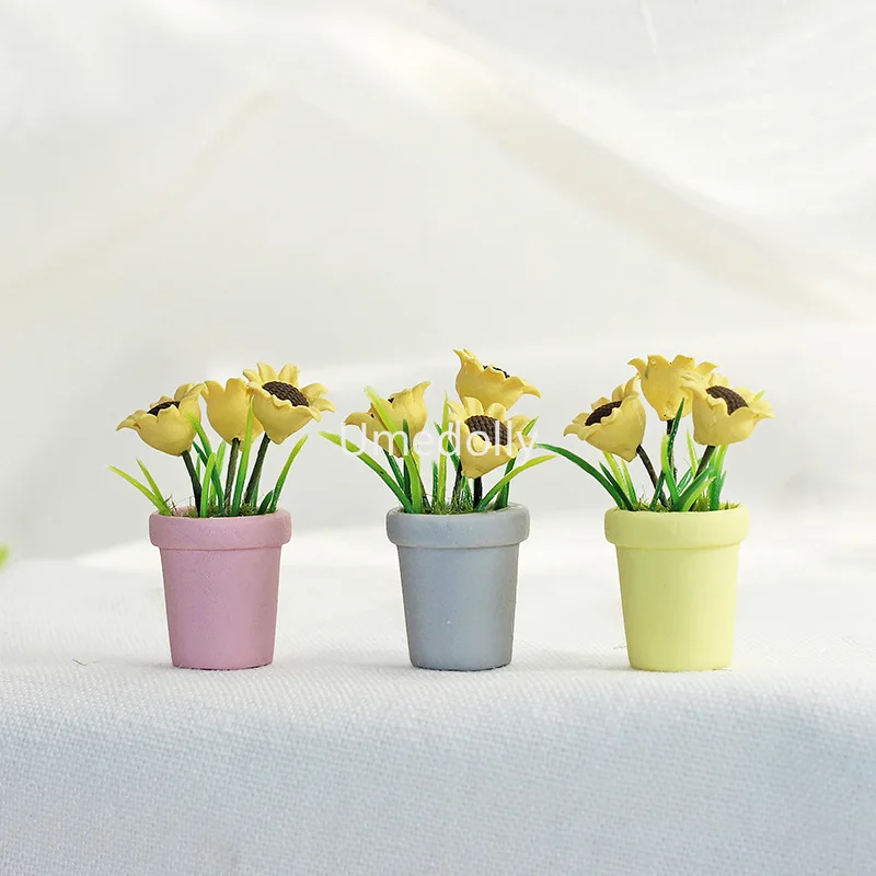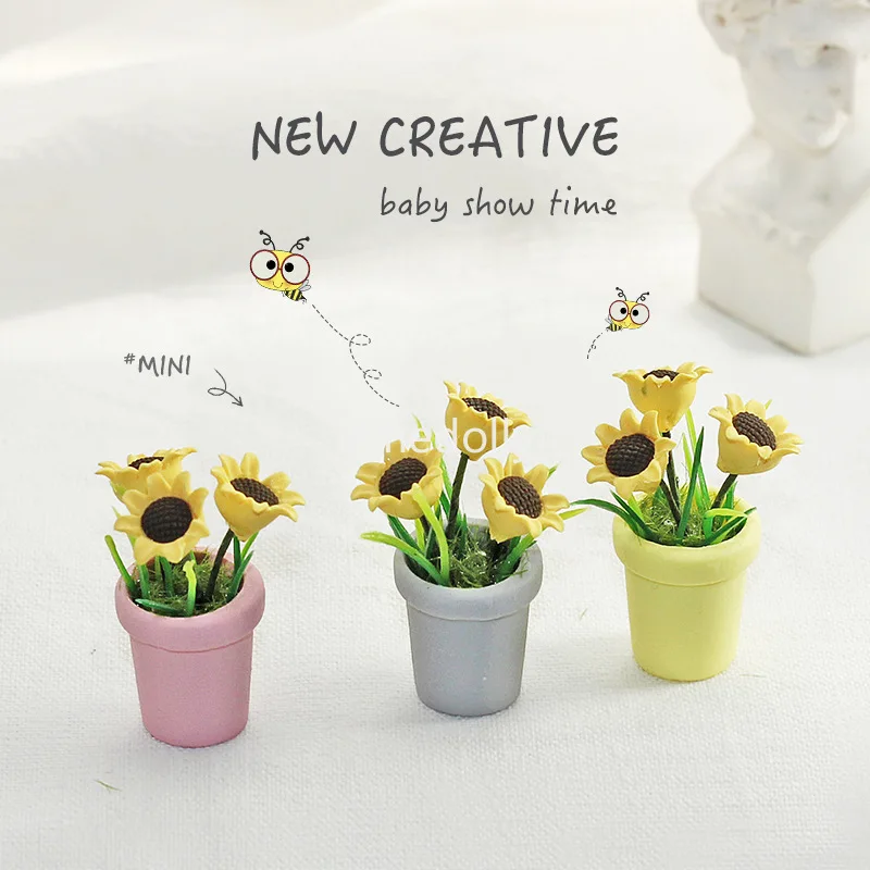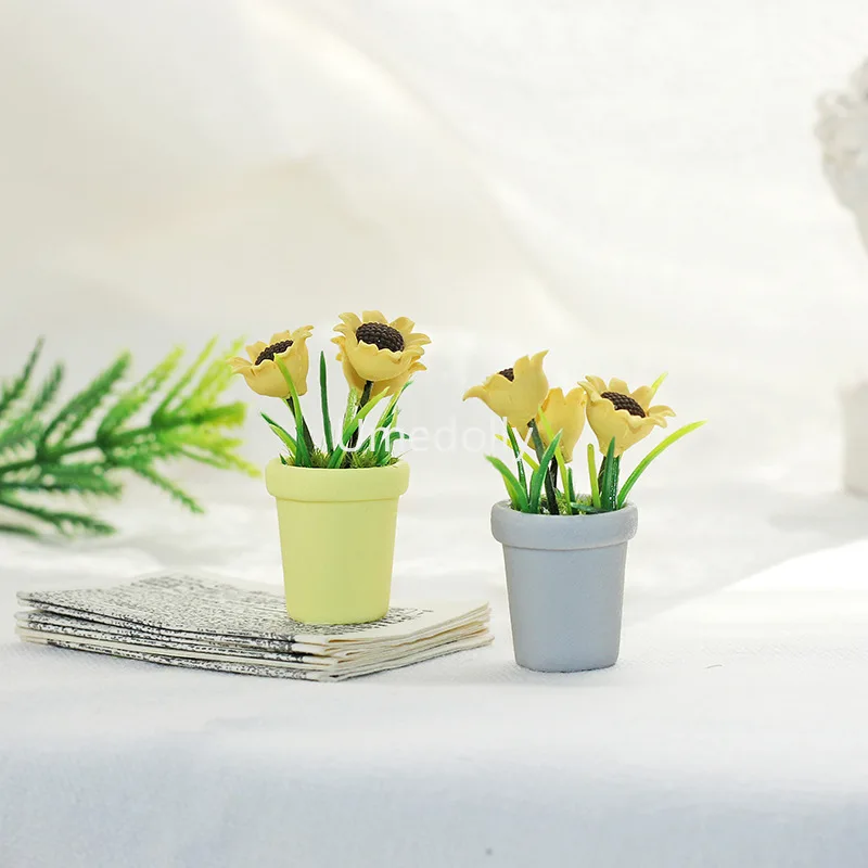 Миниатюрный Кукольный домик в масштабе 112, Подсолнух, миниатюрный цветок, украшение для Blyth, Барби, аксессуары для кукольного дома, игрушка