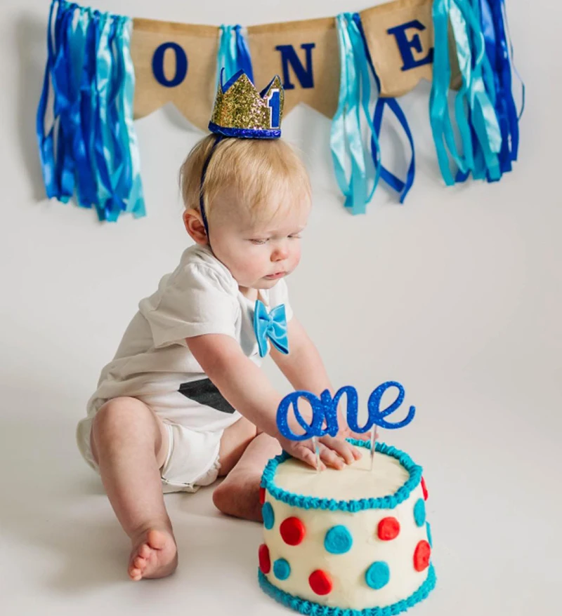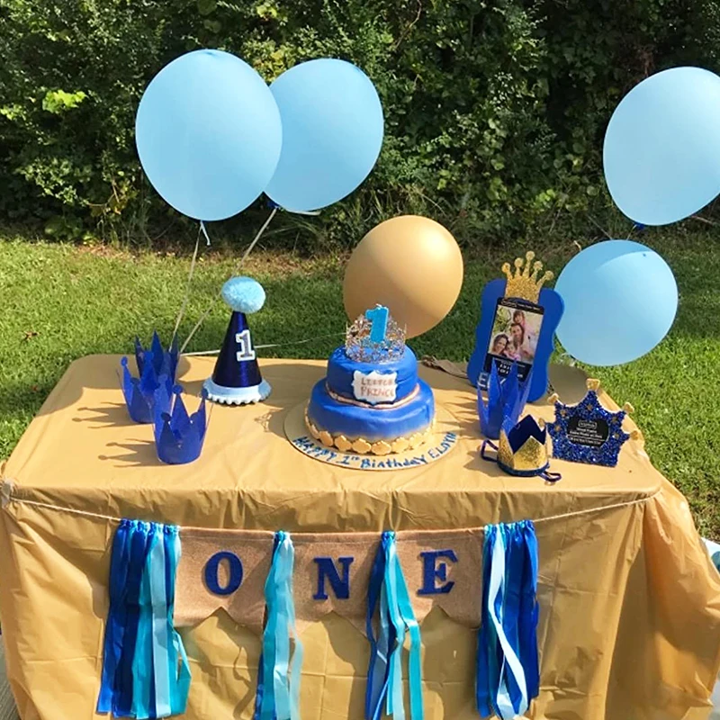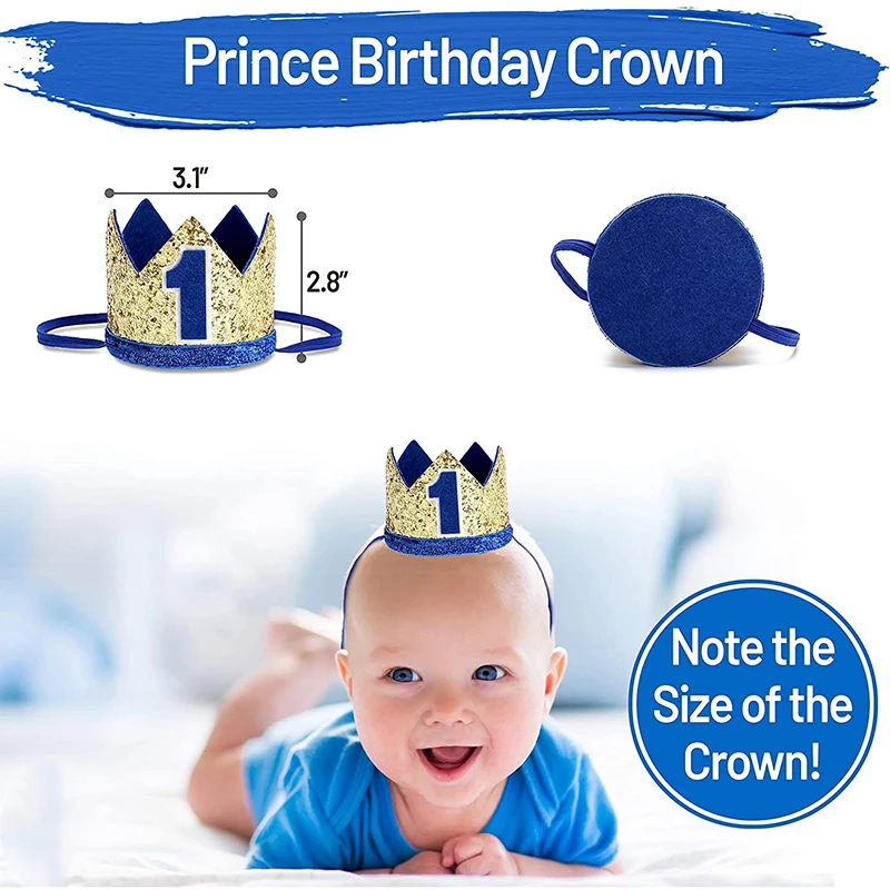 2. Корона, подходящая для маленького мальчика-ничего, топики маленького мальчика в его синей короне первого дня рождения, как принц! С вашим баннером «ONE» из мешковины и «ONE», вы также получите эту красивую корону для того, чтобы носить его в большой день. Осторожно, украшение быстро растет!
