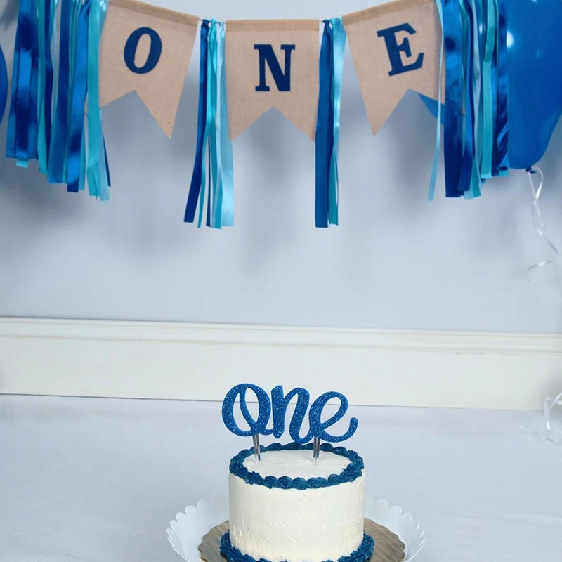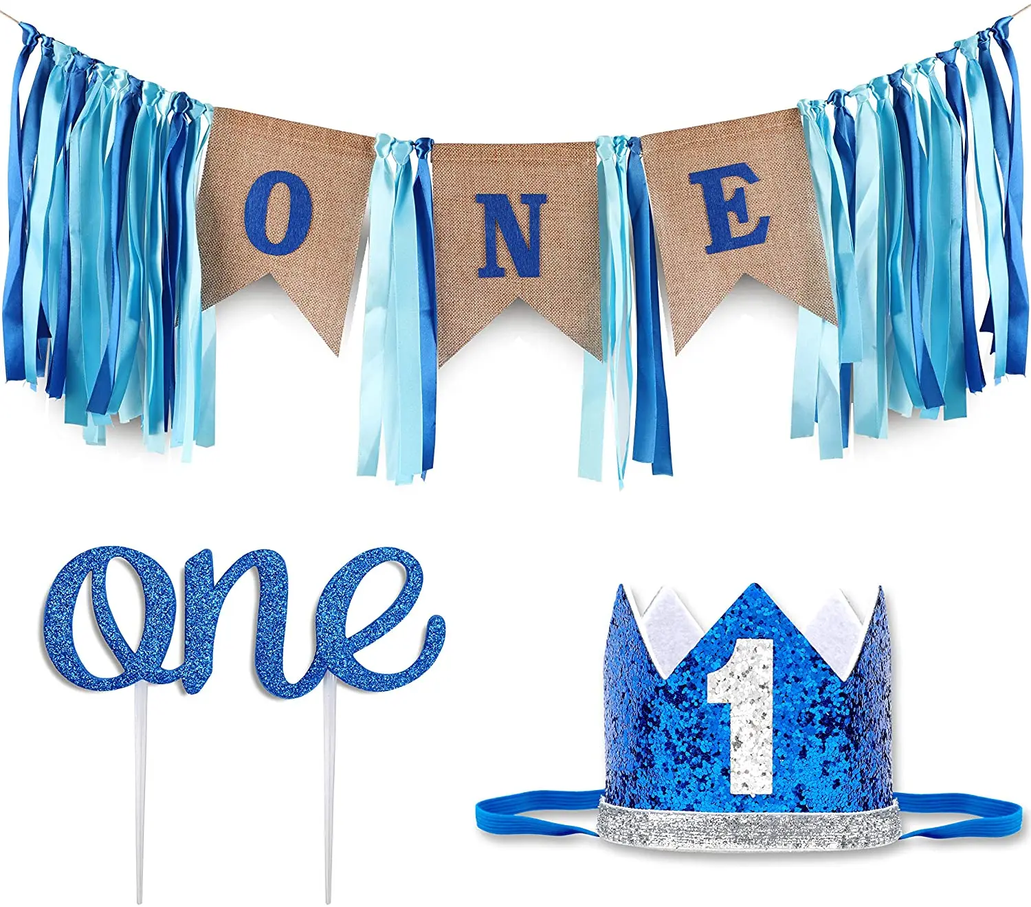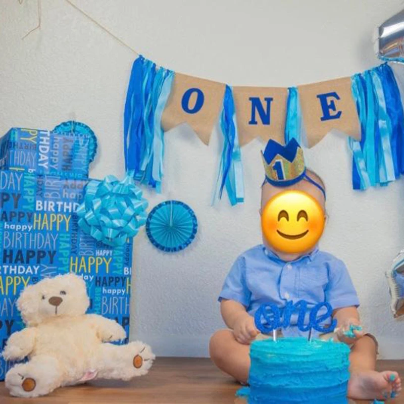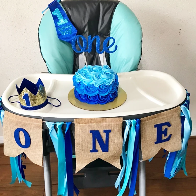 Детские украшения на 1-й день рождения для мальчиков, высокий стул, баннер, корона, украшения на первый день рождения, торт, Топпер на день рождения, один баннер для вечеринки
