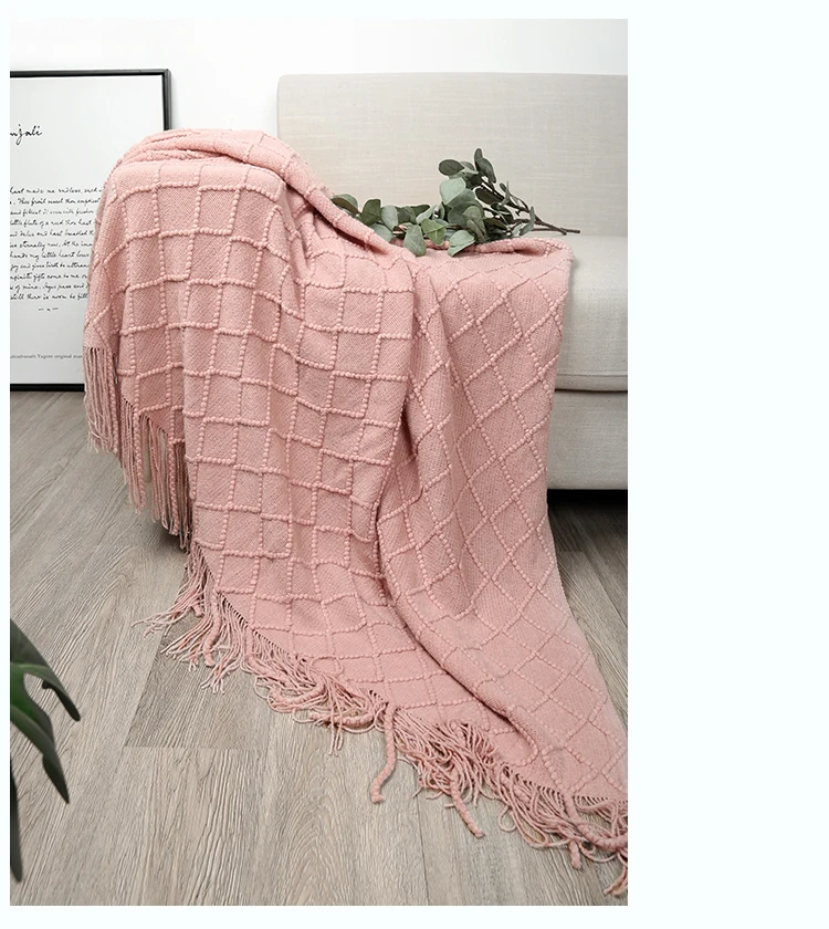 Плед с кисточками в скандинавском стиле, однотонное Клетчатое одеял...