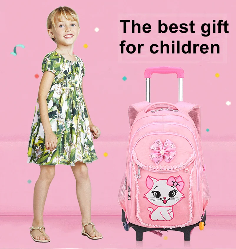 2022 детские школьные ранцы на колесиках, школьный рюкзак, школьные сумки на колесиках, Детские рюкзаки для девочек, школьные рюкзаки с кошкой на колесиках, сумки