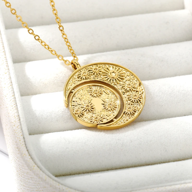 Винтажное ожерелье Sun Moon для женщин, золотая цепочка из нержавеющей стали, ожерелья, женское эстетическое украшение в стиле бохо, подарок для пары, женское колье