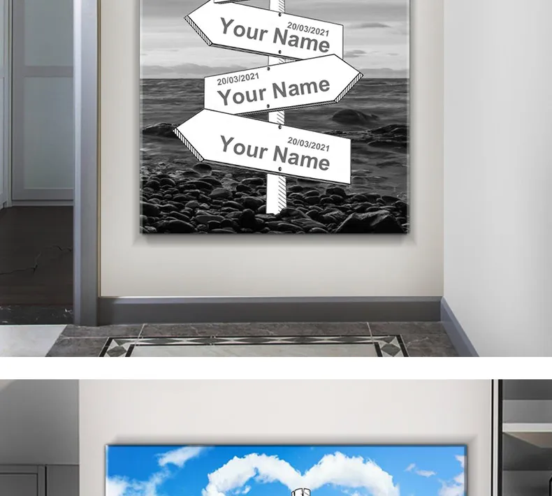 1. Подгоняйте панели дома и напечатайте панели на холсте, чтобы создать устойчивый сувенир: небо черное и белое. Большое море, индивидуальные специальные проекты с именами и датами.