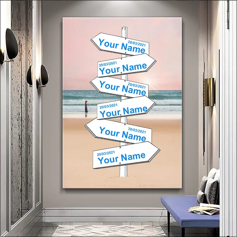 Персонализированные постеры с уличным пересечением с 2 - 6 именамидатами памятные холщовые подарки для дорожных знаков семьи