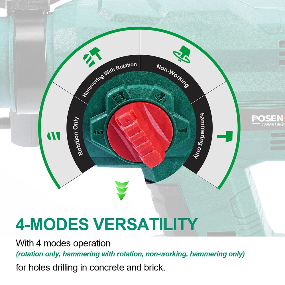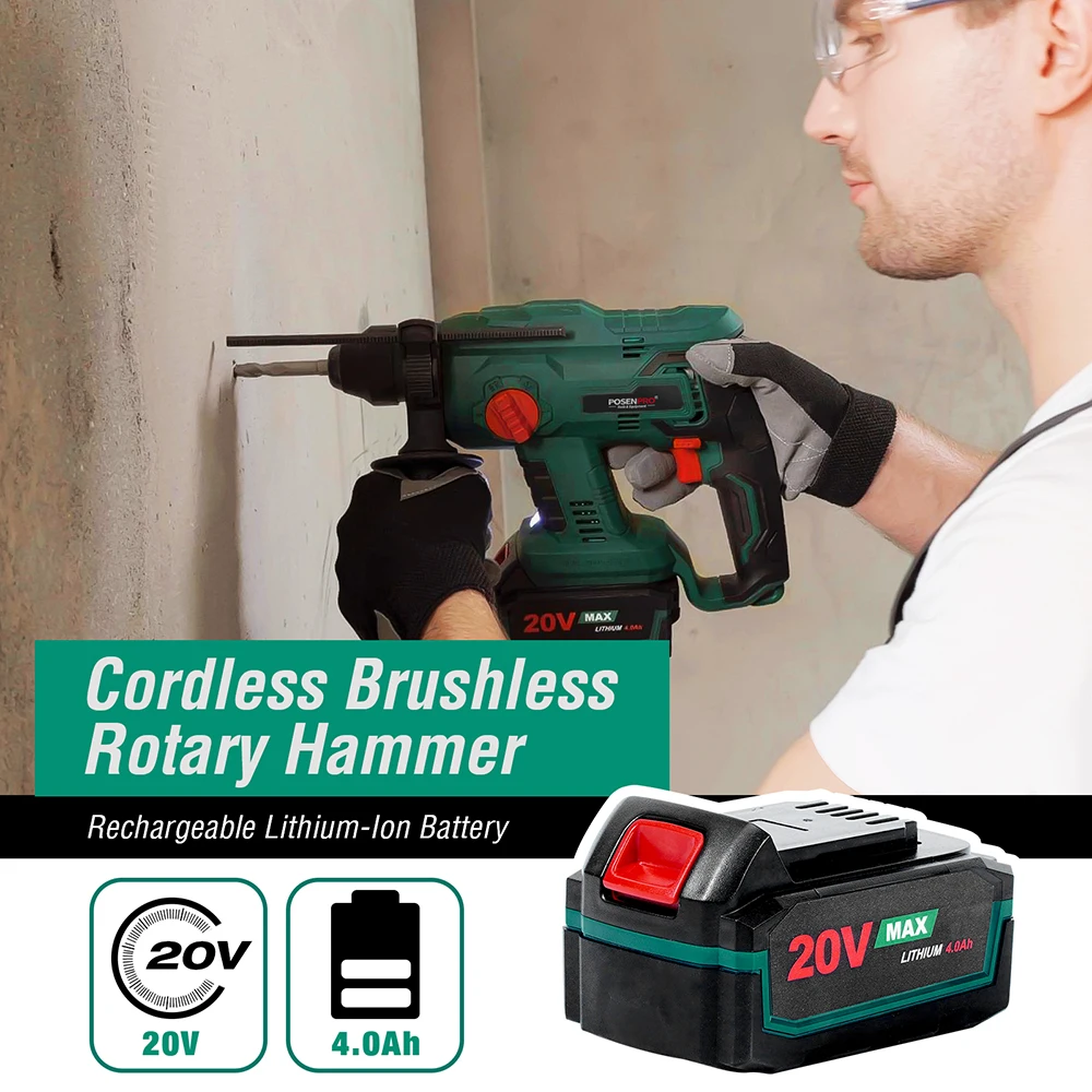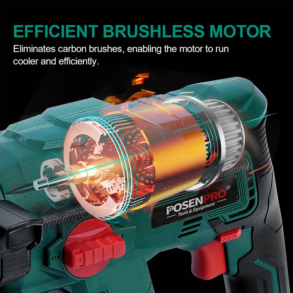 Бесщеточный перфоратор POSENPRO, электрическая дрель, 20 в, беспроводной перфоратор 1.7J SDS PLUS, сверлильный стальной, бетонный, деревянный электроинструмент