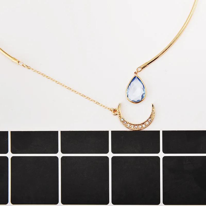 1 шт. креативная подвеска в виде Луны, открытое ожерелье-чокер для дам, женское короткое ожерелье, ожерелье с бриллиантами и каплями Луны