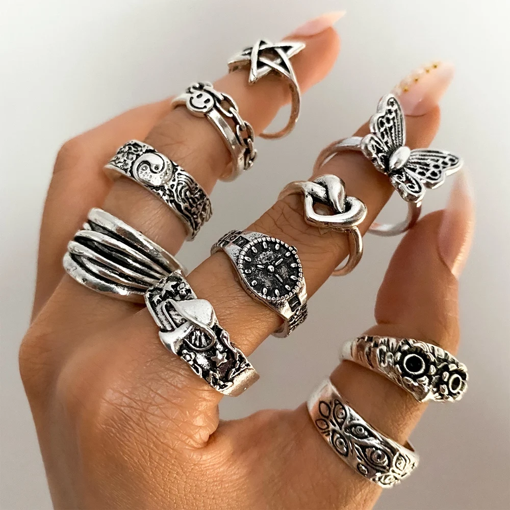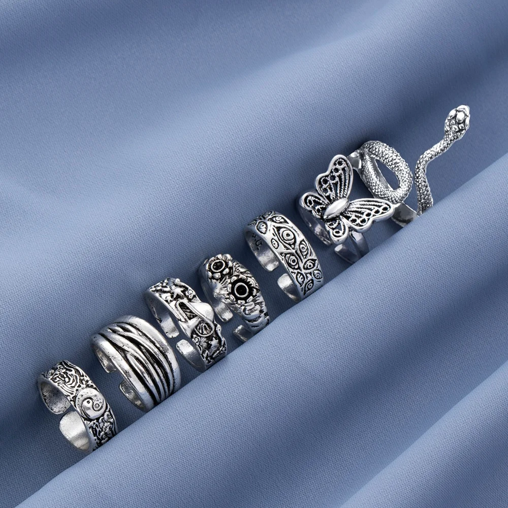 Винтажное посеребренное открытое кольцо в виде змеи, совы, гриба для женщин, готический панк, стимпанк, сердце, бабочка, кольцо для глаз, комплекты ювелирных изделий для вечеринки кольца