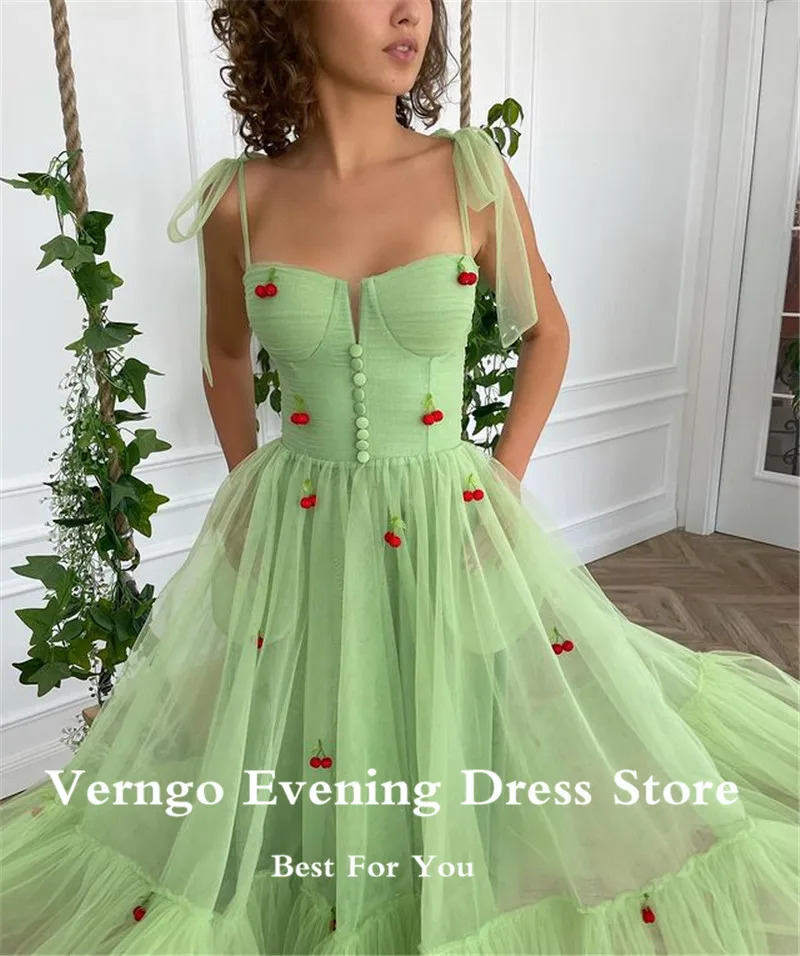 Verngo 2021 Нефритовое зеленое Тюлевое ТРАПЕЦИЕВИДНОЕ платье для выпускного вечера на бретельках вишни с завязкой бантом вечерние платья до щиколотки платье для встречи выпускников