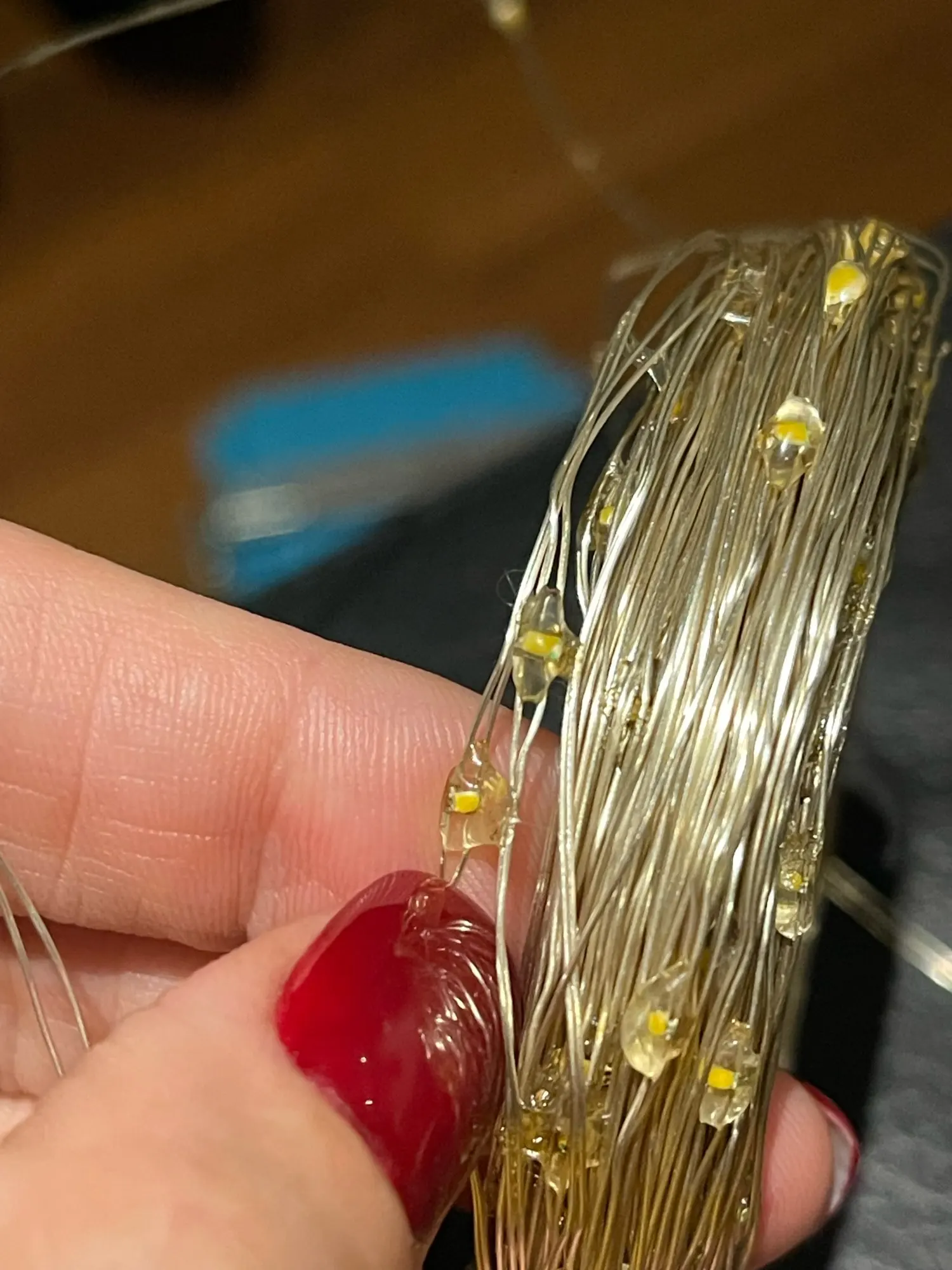 Свет был поврежден, все они были липкими и были невозможно отсоединить. У них также был странный химический запах. Продавец сказал, что с ними нет никаких проблем, так как я получил свой заказ, так что все в порядке. Я заказал 3 комплекта, и только этот пришел таким образом. К сожалению, Aliexpress был достаточно любезен, чтобы вернуть деньги.