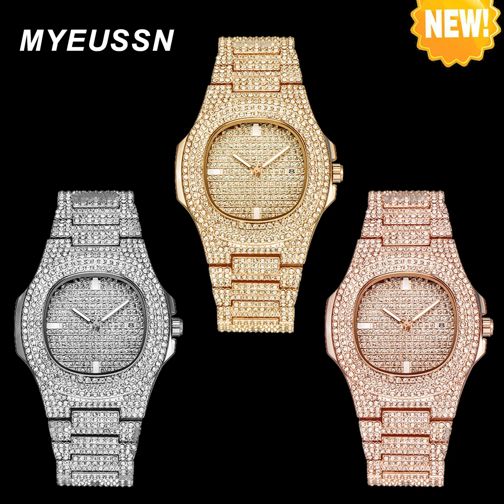 Часы наручные мужские кварцевые, роскошные брендовые водонепроницаемые полностью со стразами, в стиле хип-хоп, с фианитом AAA, подарок для мужчин