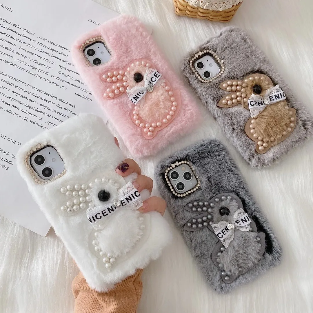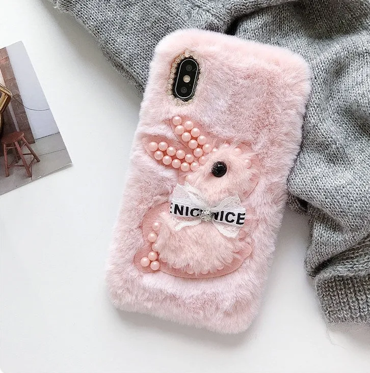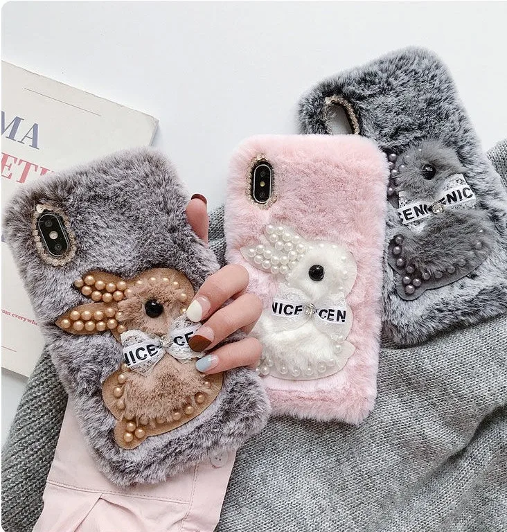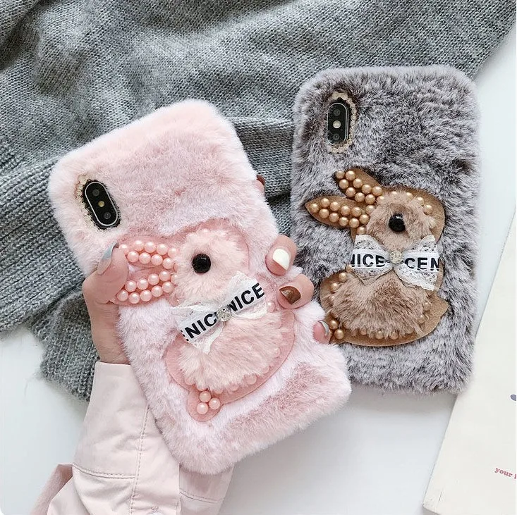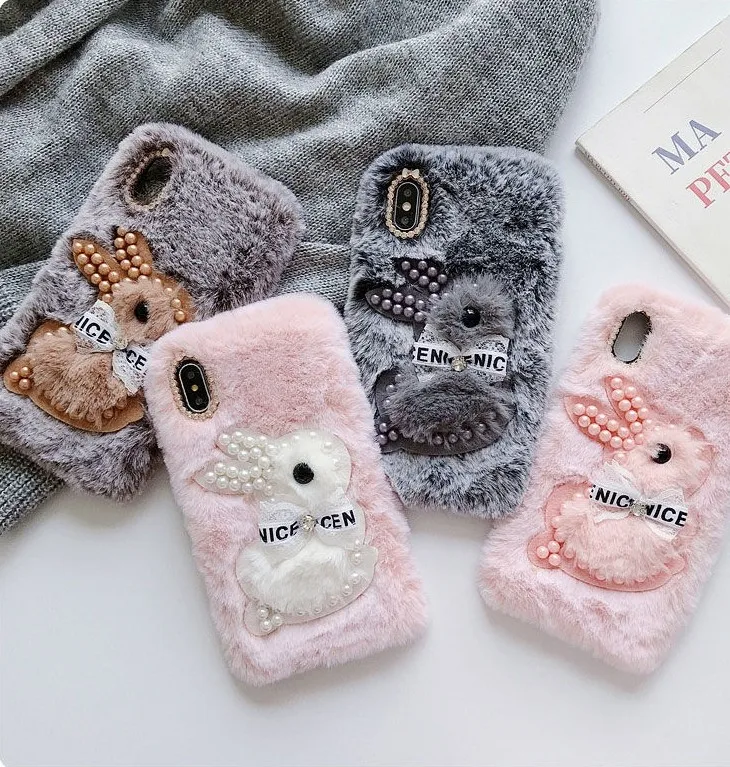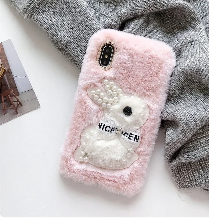 Мягкий плюшевый чехол с кроликом для Samsung Galaxy Note 8, 9, S10 ...